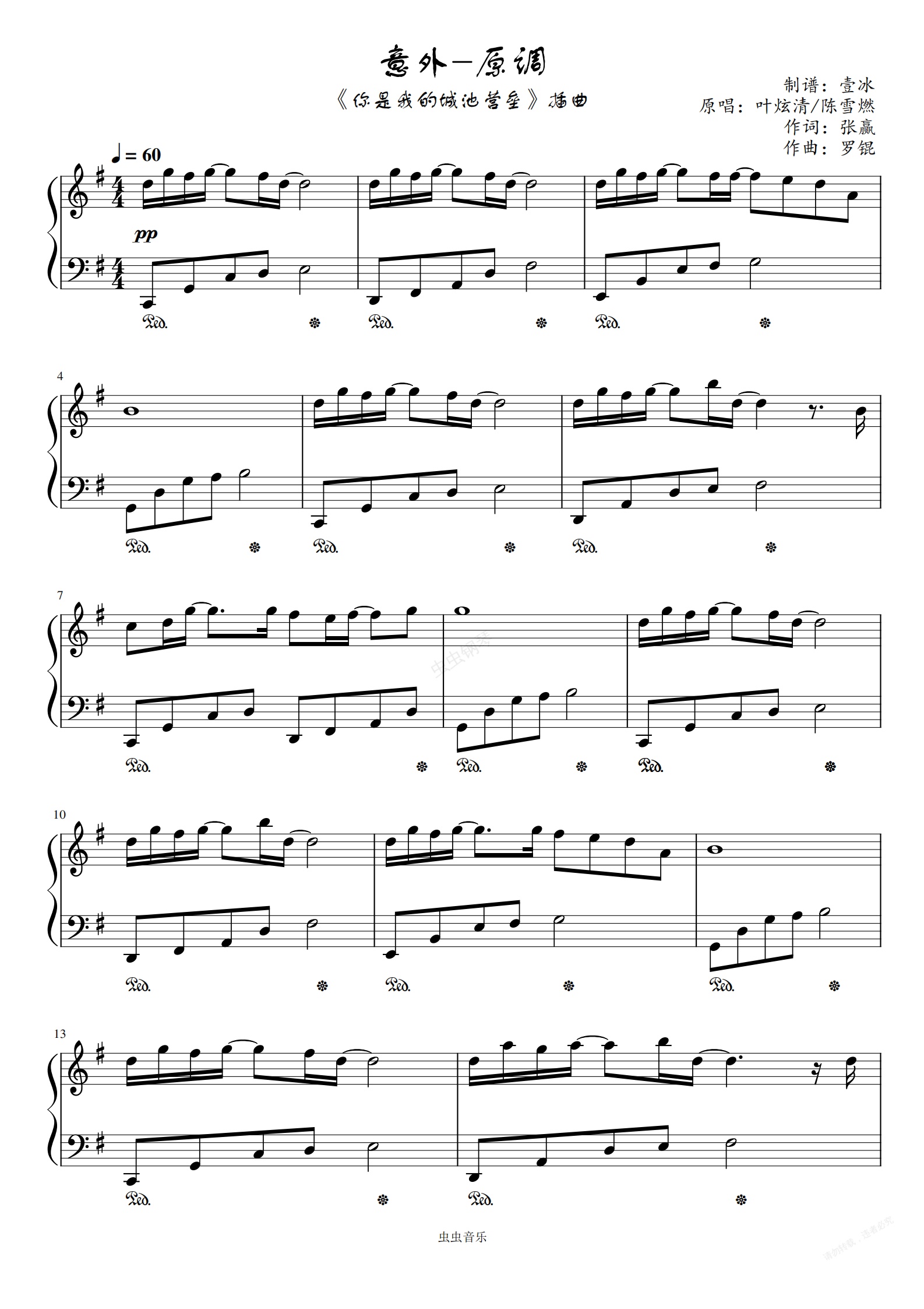 钢琴谱:意外//《你是我的城池营垒》插曲-原调版