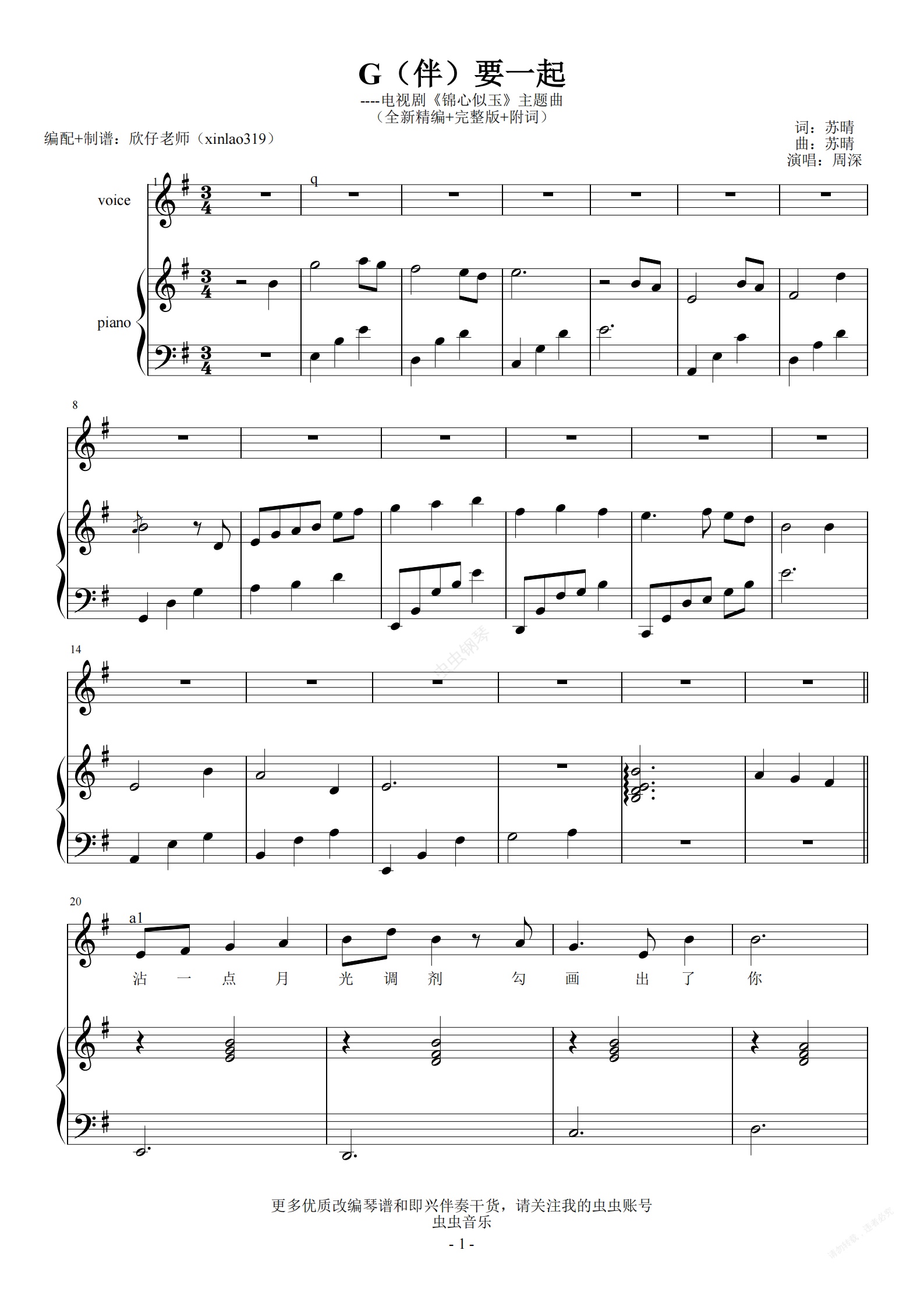 钢琴谱:周深-G(伴)《要一起》(完整版+附词)