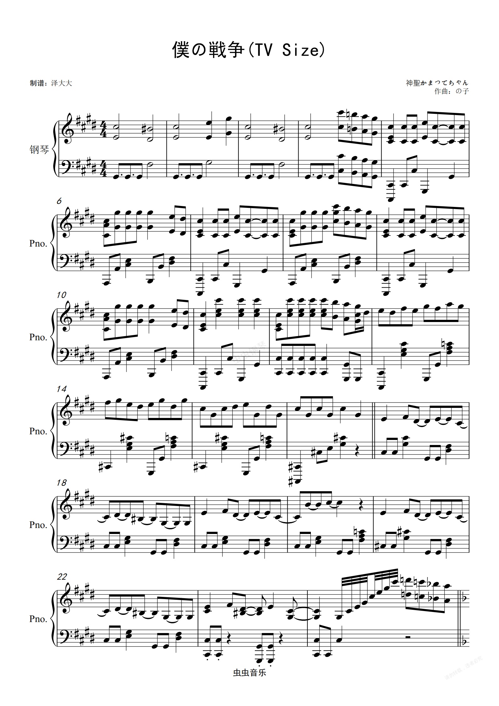 钢琴谱:僕の戦争【进击的巨人】钢琴独奏 泽大大