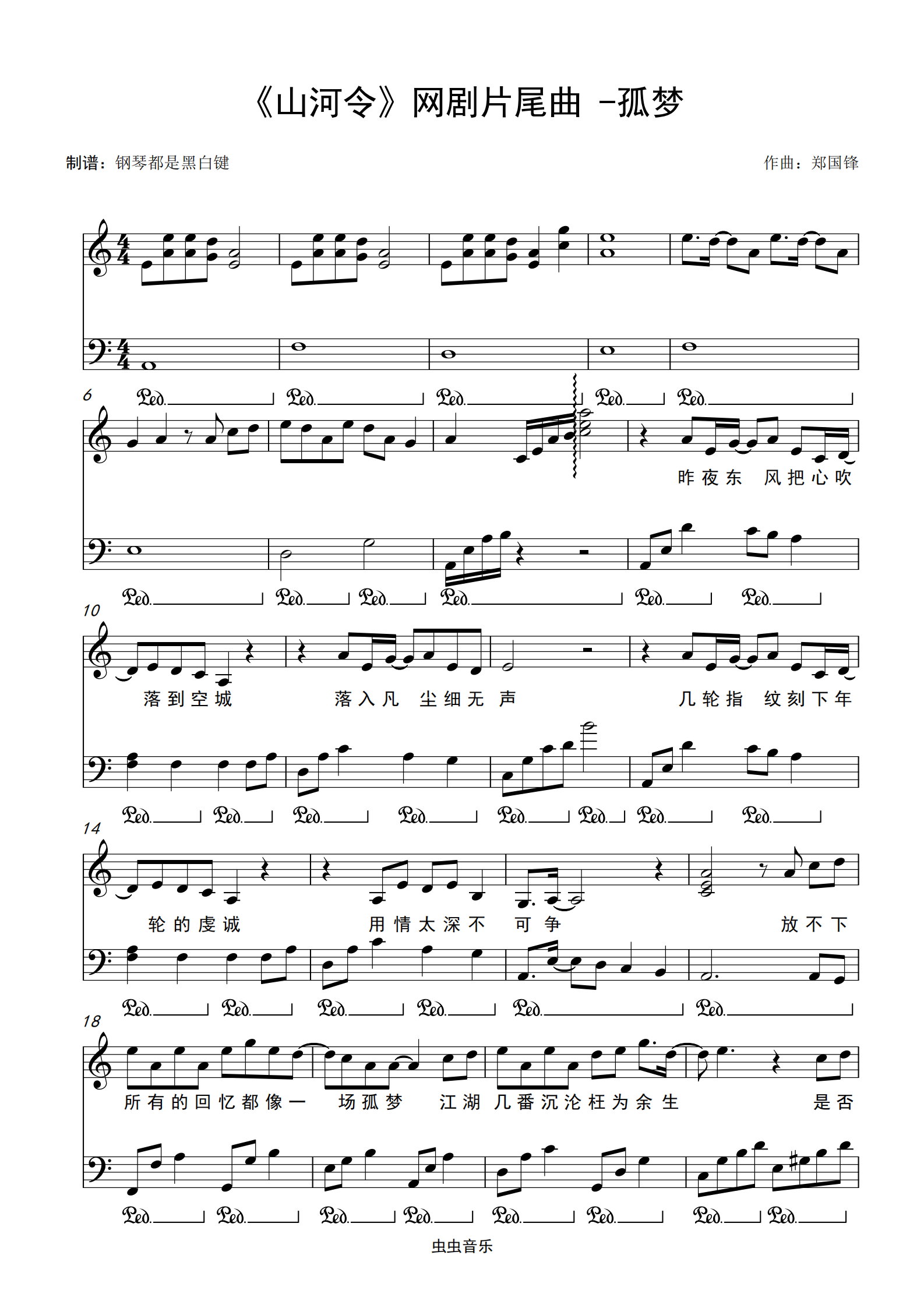 钢琴谱:《山河令》网剧片尾曲 -优美版-孤梦 附歌词