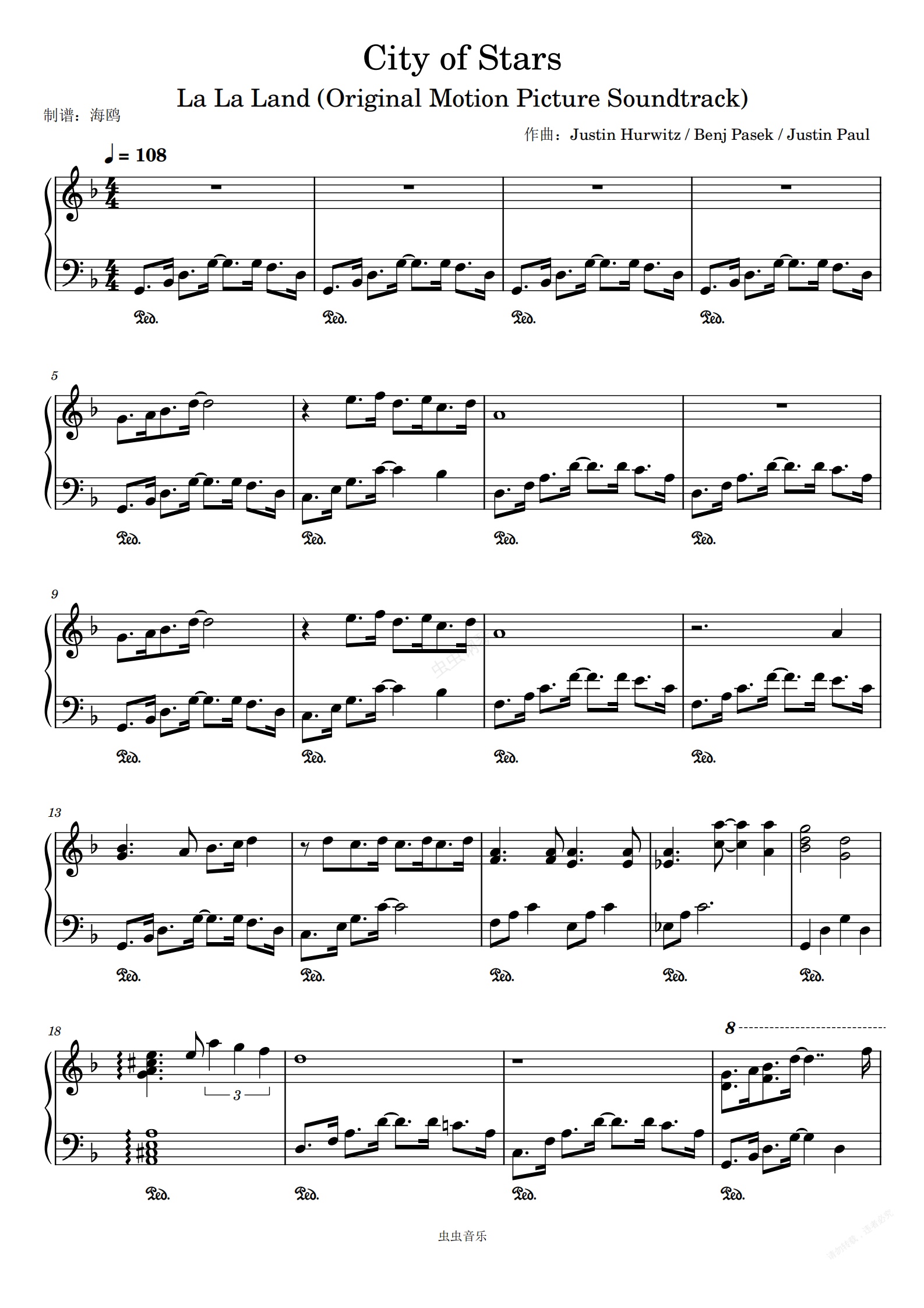 钢琴谱:City Of Stars《爱乐之城》插曲