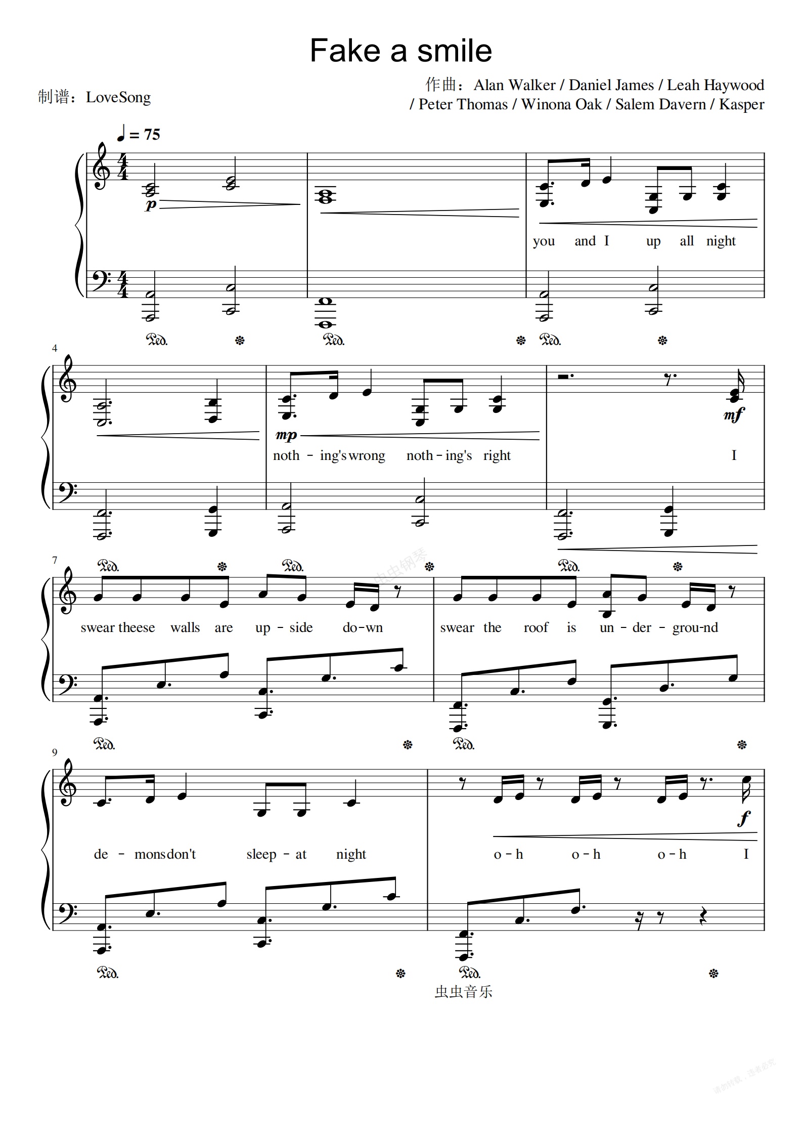 钢琴谱:Alan Walker 新歌 Fake a smile