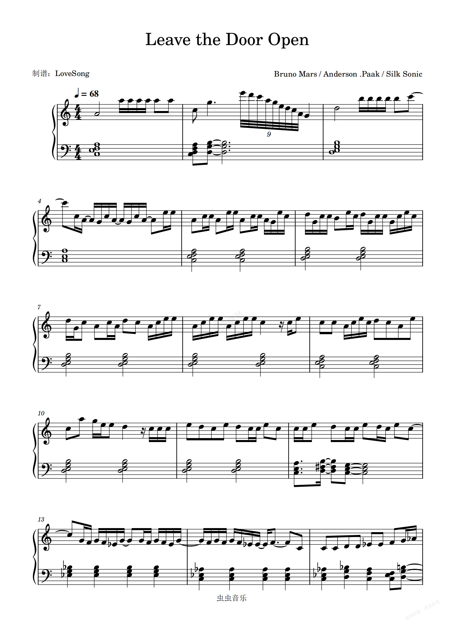 钢琴谱:Bruno mars 火星哥 Leave the Door Open
