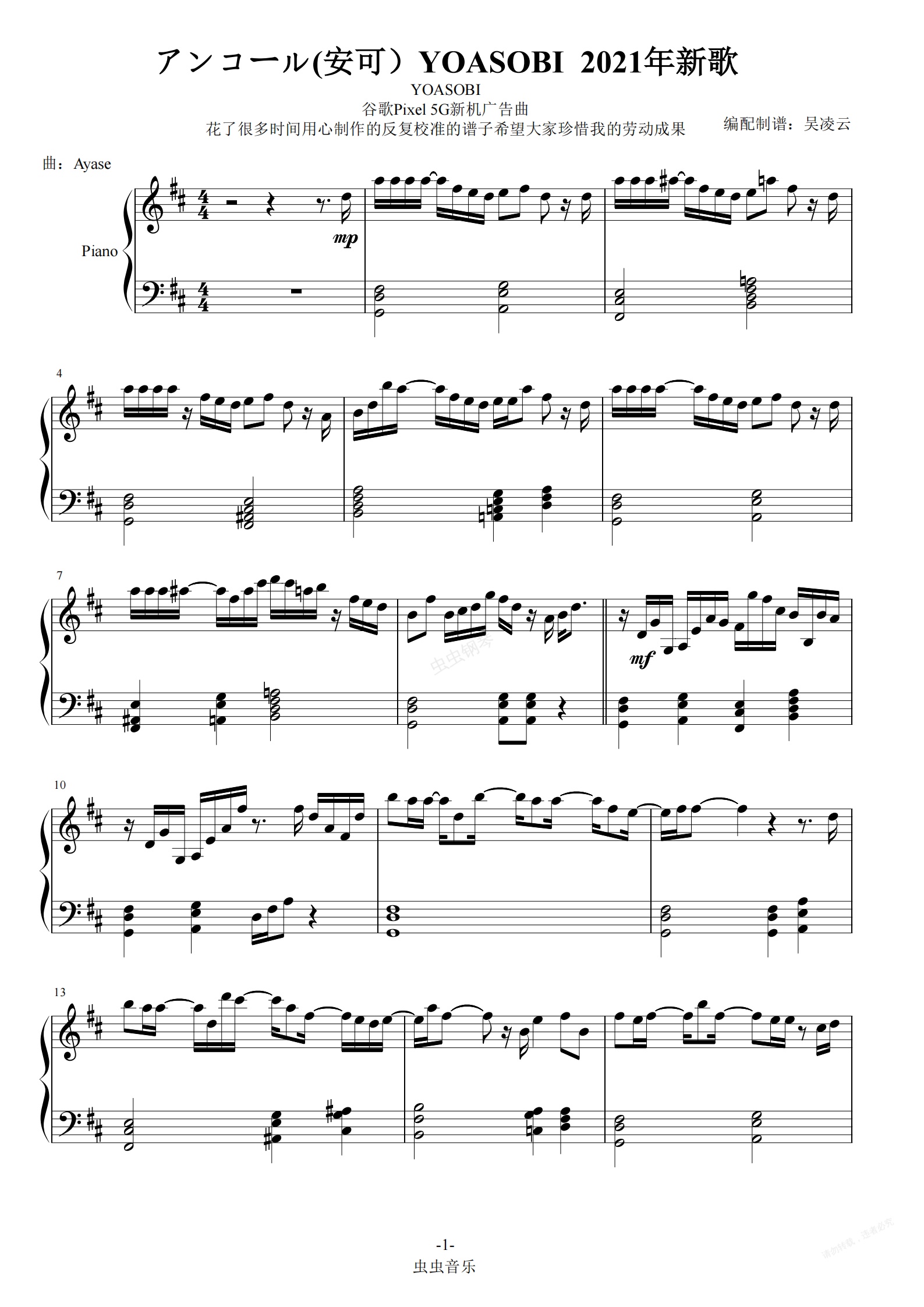 钢琴谱:アンコール(安可)YOASOBI 2021年新歌 吴凌云钢琴演奏版 谷歌Pixel 5G新机广告曲