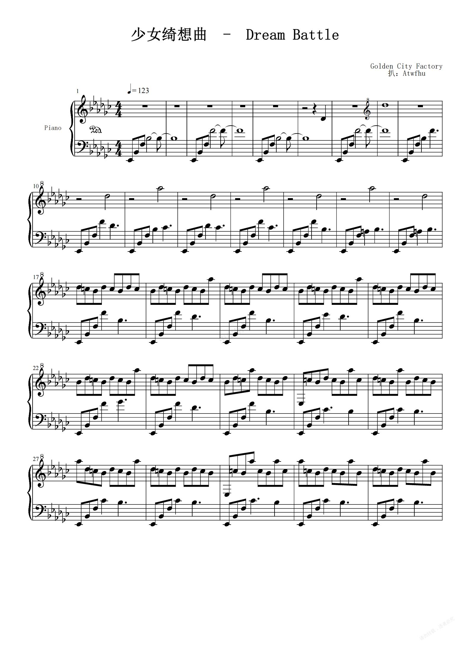 钢琴谱:【东方project】少女绮想曲 - Dream Battle -Golden City Factory