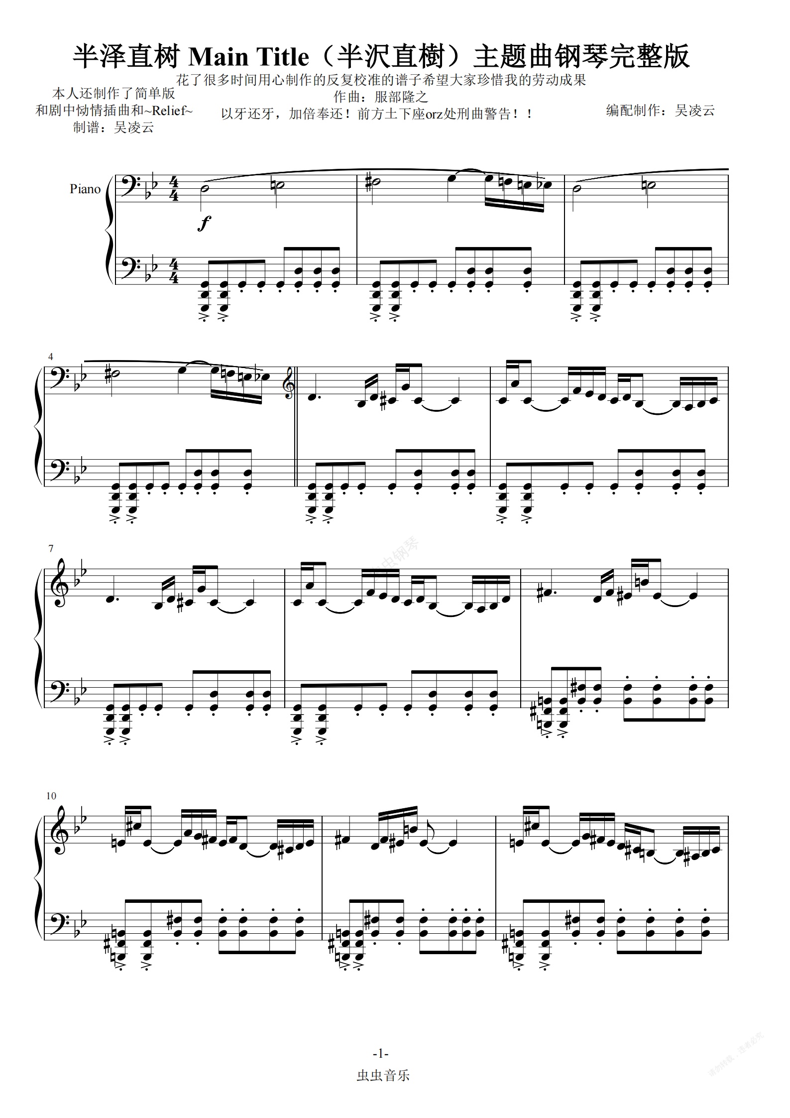 钢琴谱:半泽直树 Main Title(半沢直樹)主题曲钢琴完整版 剧中灵魂处刑曲 吴凌云钢琴演奏版