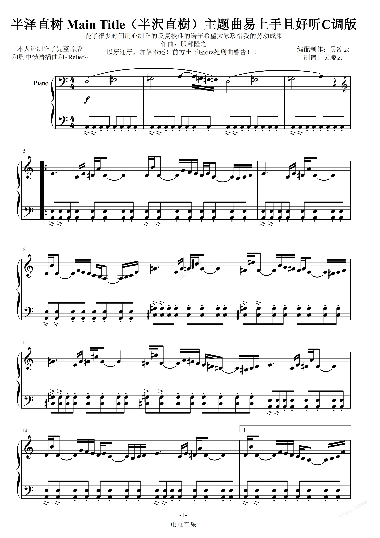 钢琴谱:半泽直树 Main Title(半沢直樹)主题曲易上手且好听C调版 吴凌云制作钢琴版