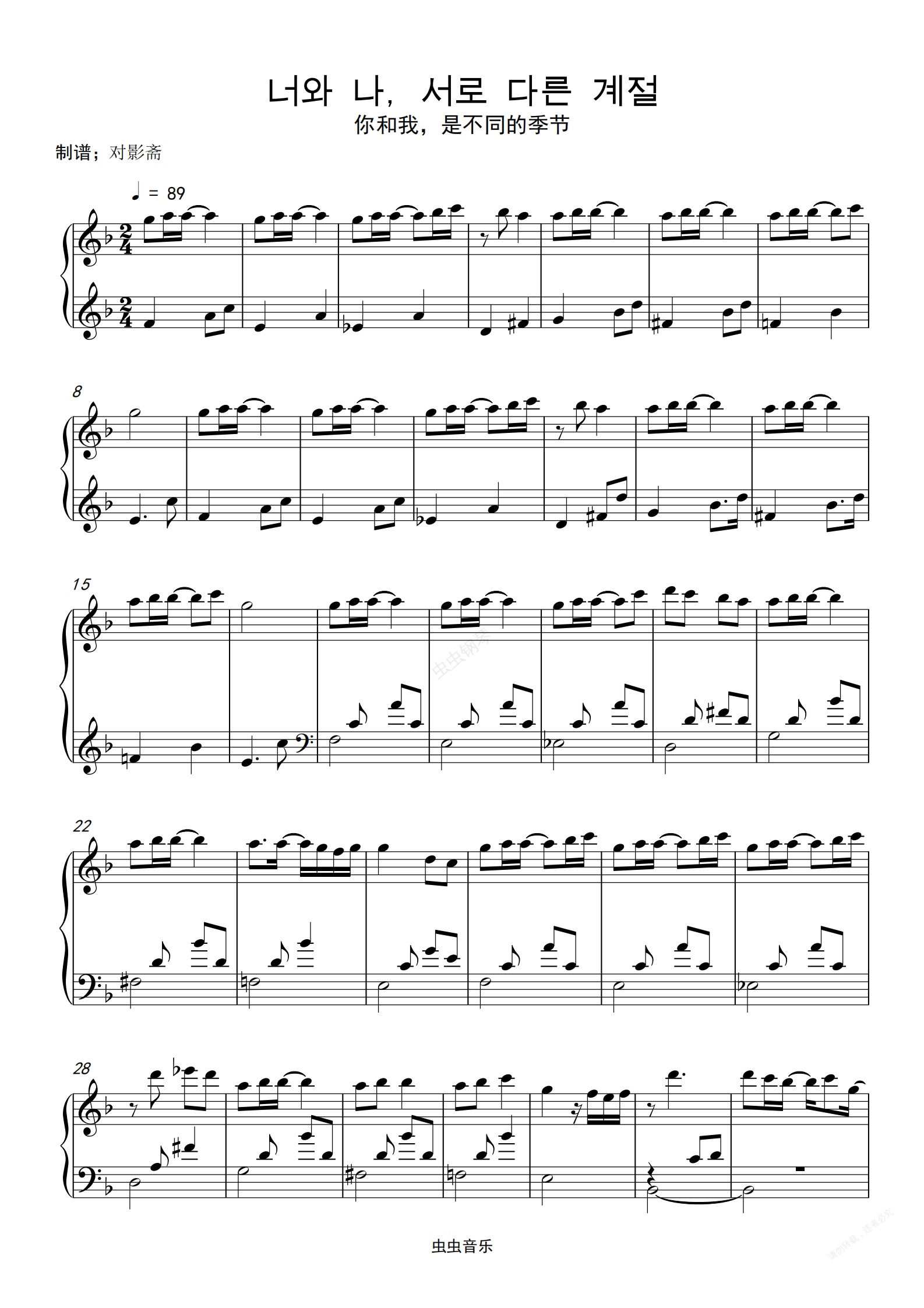 钢琴谱:你和我,是不同的季节(너와 나, 서로 다른 계절  高度还原)