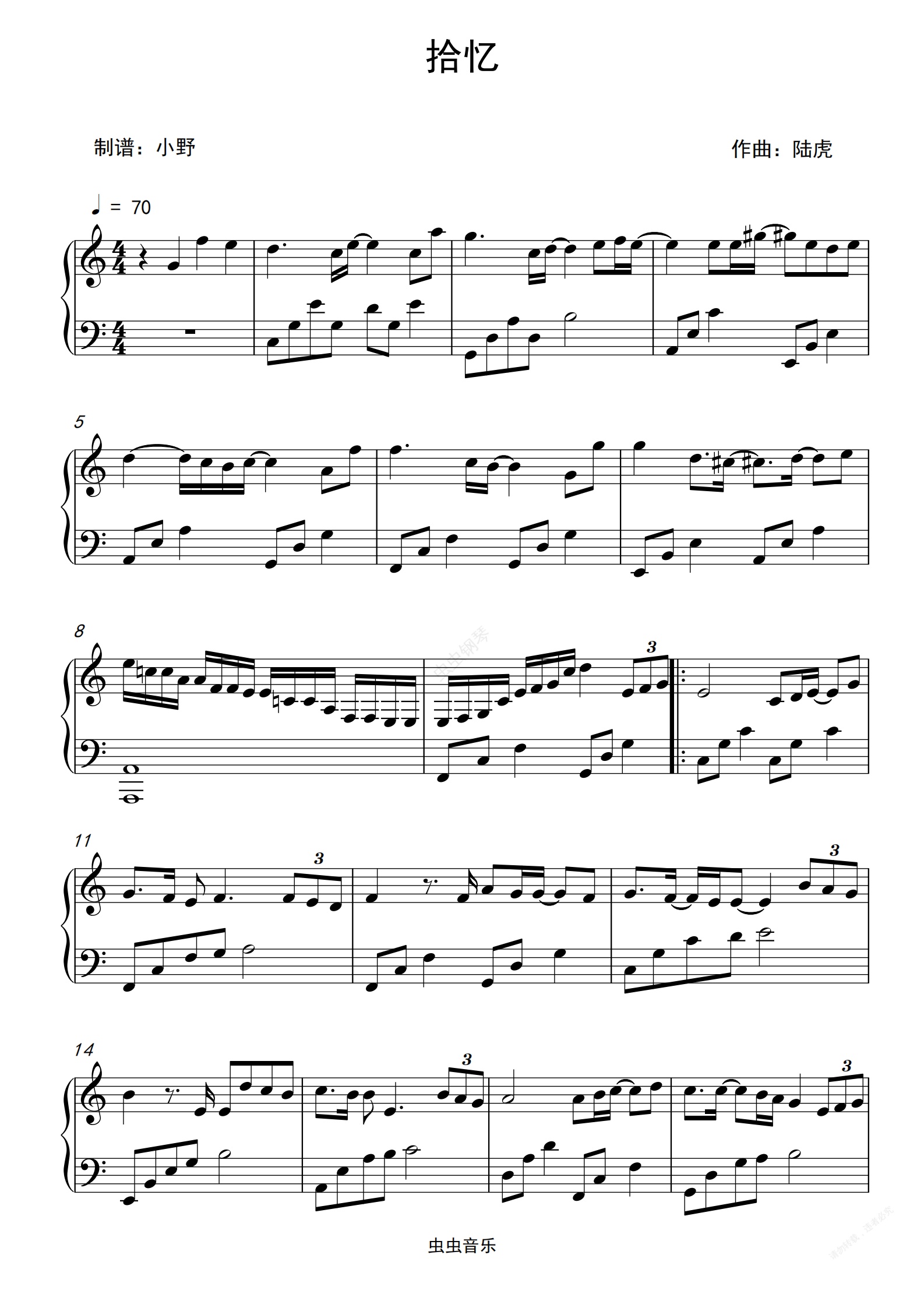 钢琴谱:拾忆