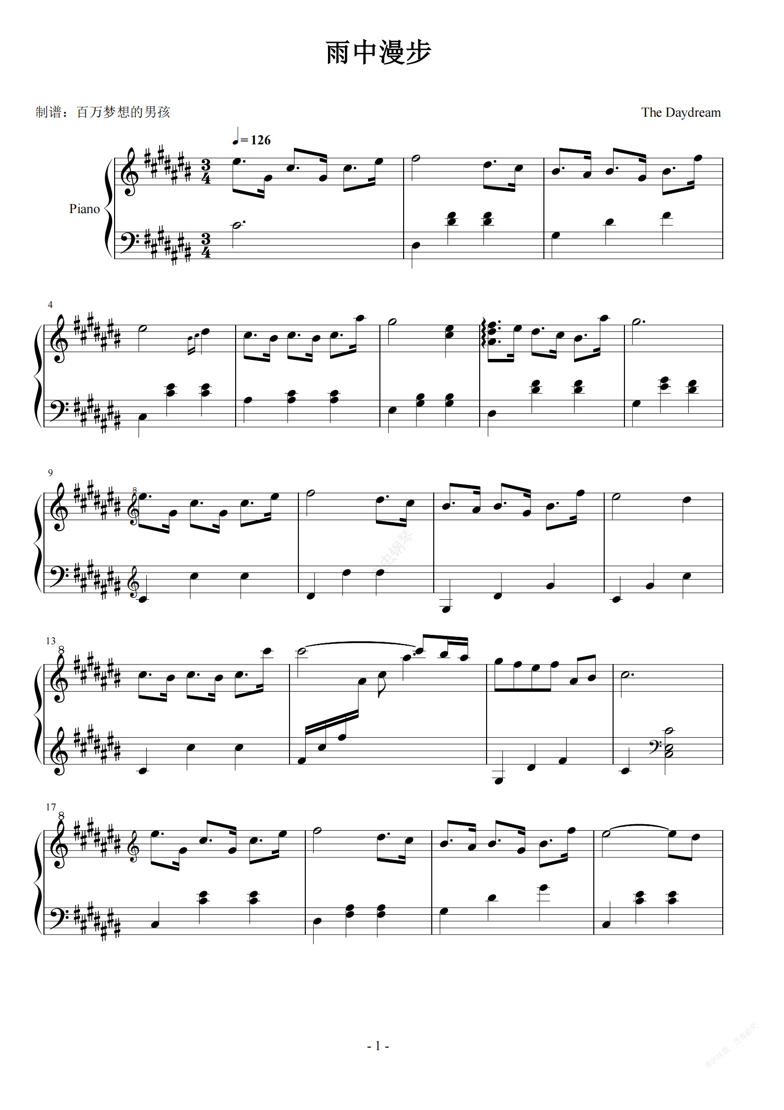 钢琴谱:雨中漫步