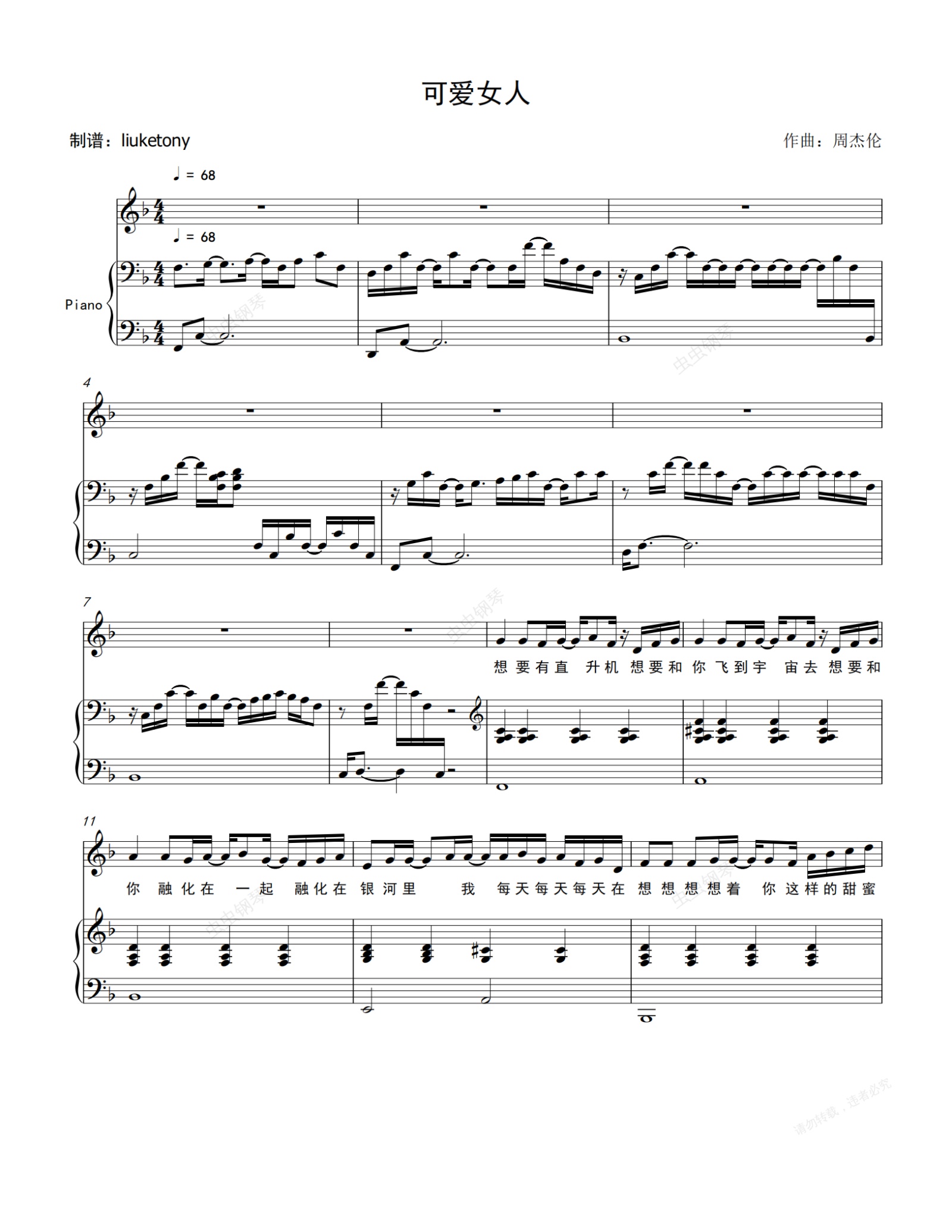 钢琴谱:可爱女人 - 钢琴伴奏版 原调