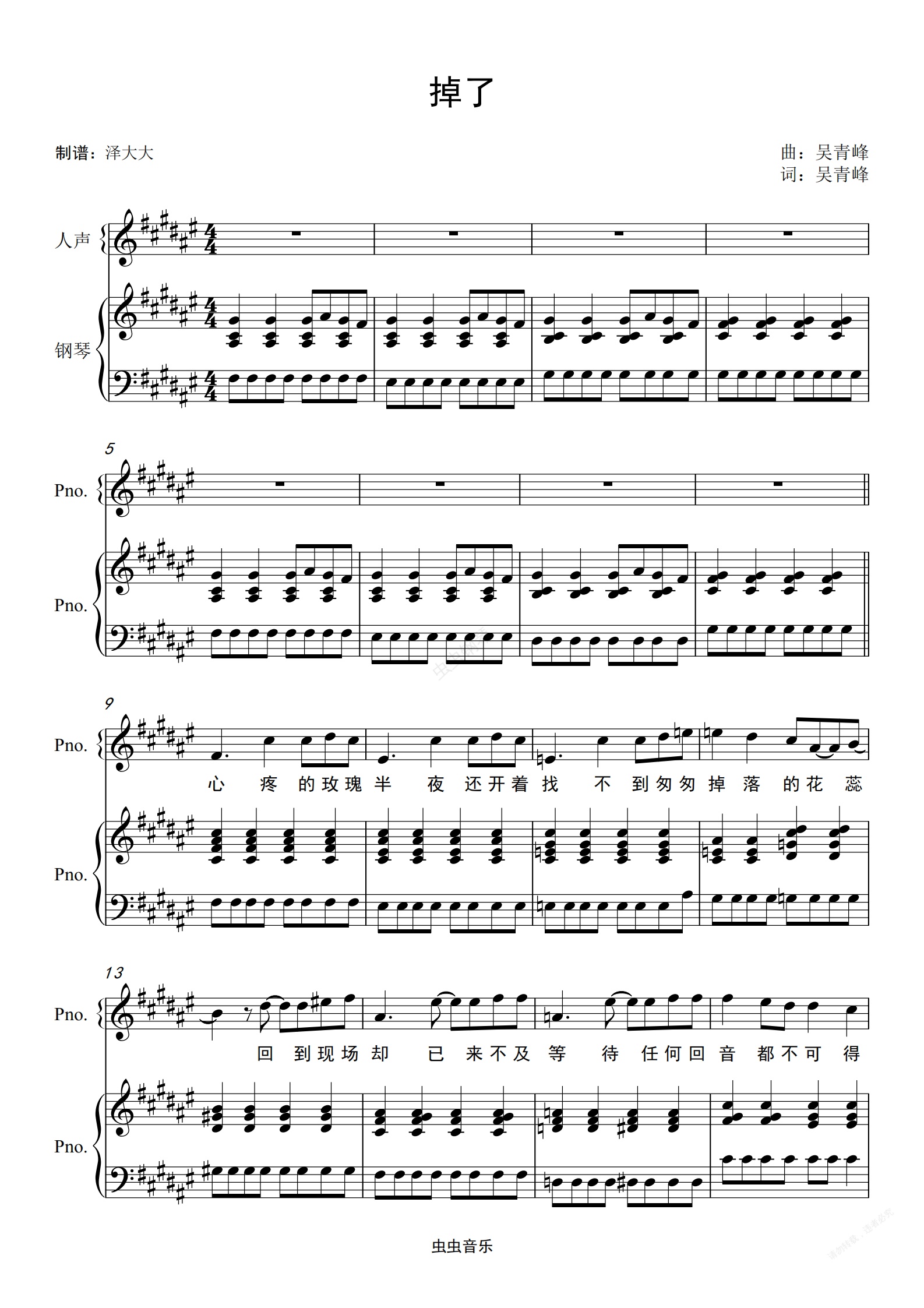 钢琴谱:掉了【完美伴奏弹唱附词】张惠妹 泽大大