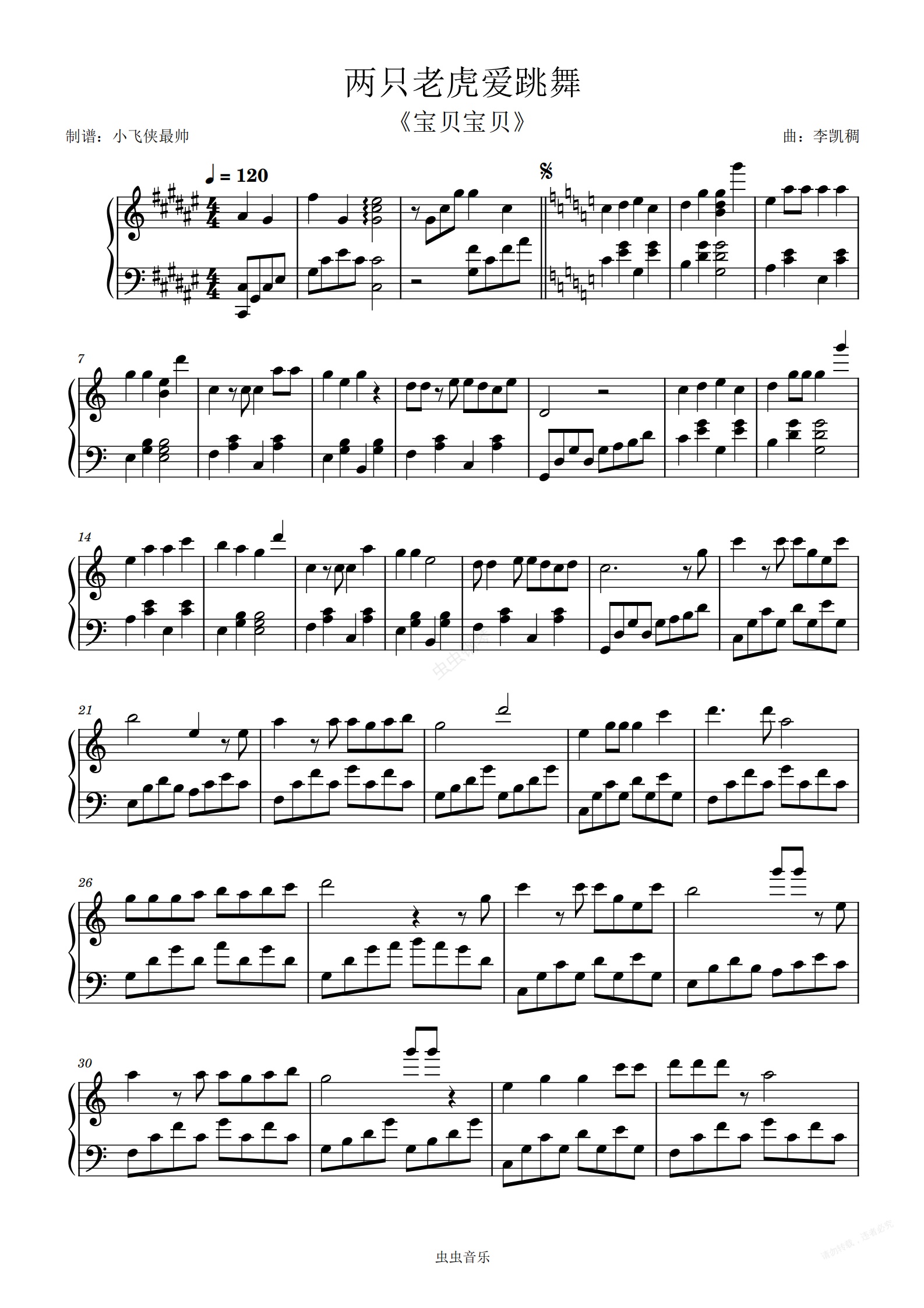 钢琴谱:两只老虎爱跳舞--《宝贝宝贝》梗曲版