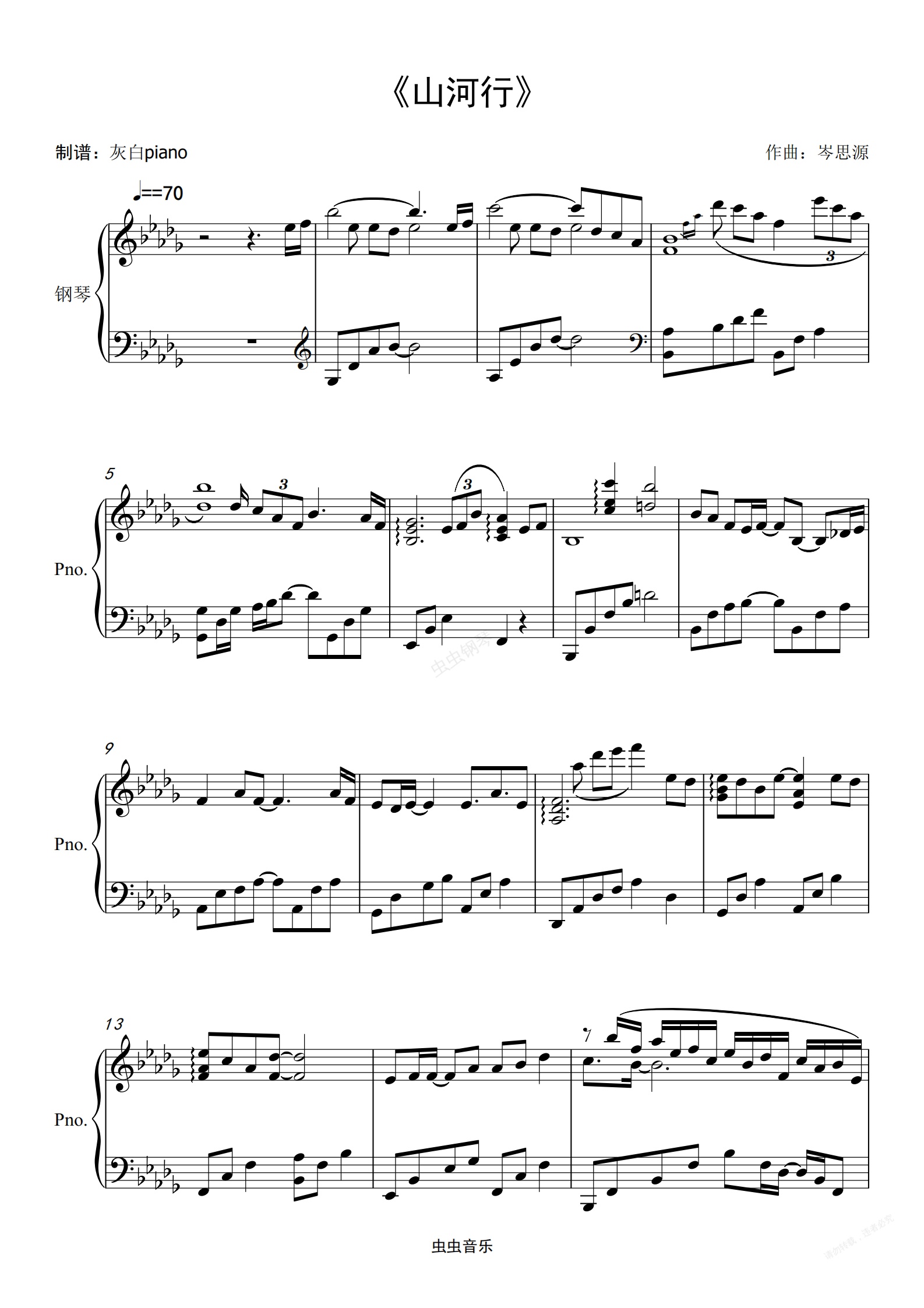 钢琴谱:《山河行》-山河令插曲-终极高燃完美编配-灰白