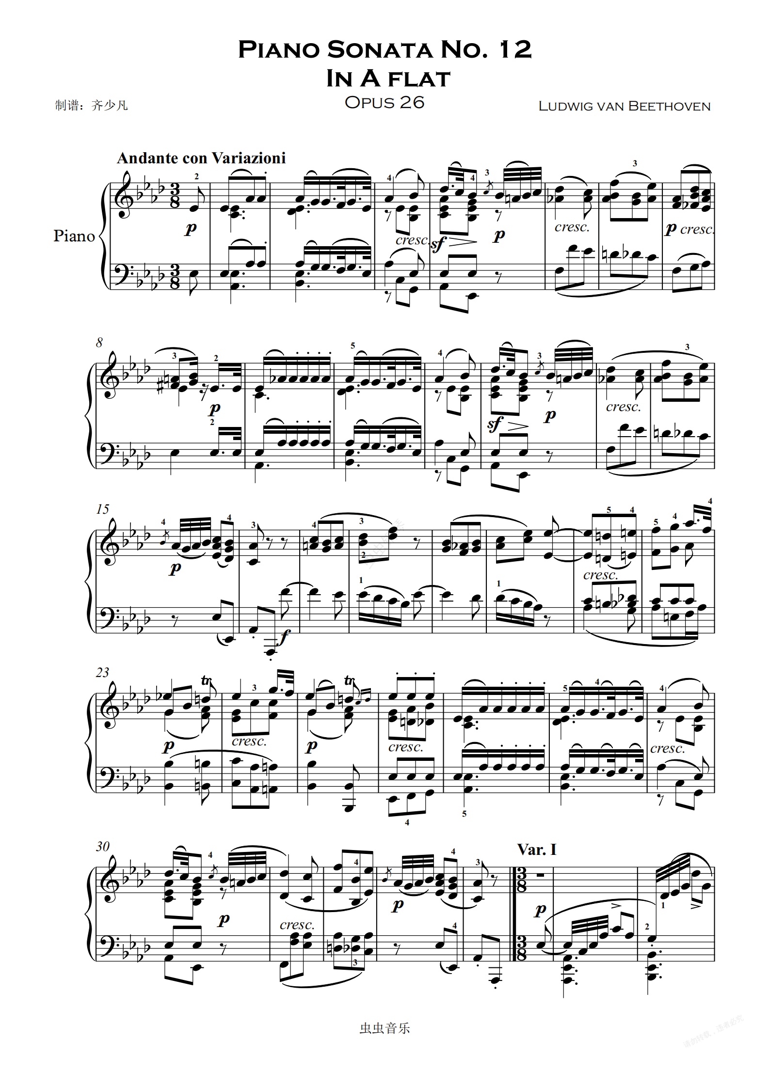 钢琴谱:第十二钢琴奏鸣曲降A大调-贝多芬钢琴奏鸣曲全集计划
