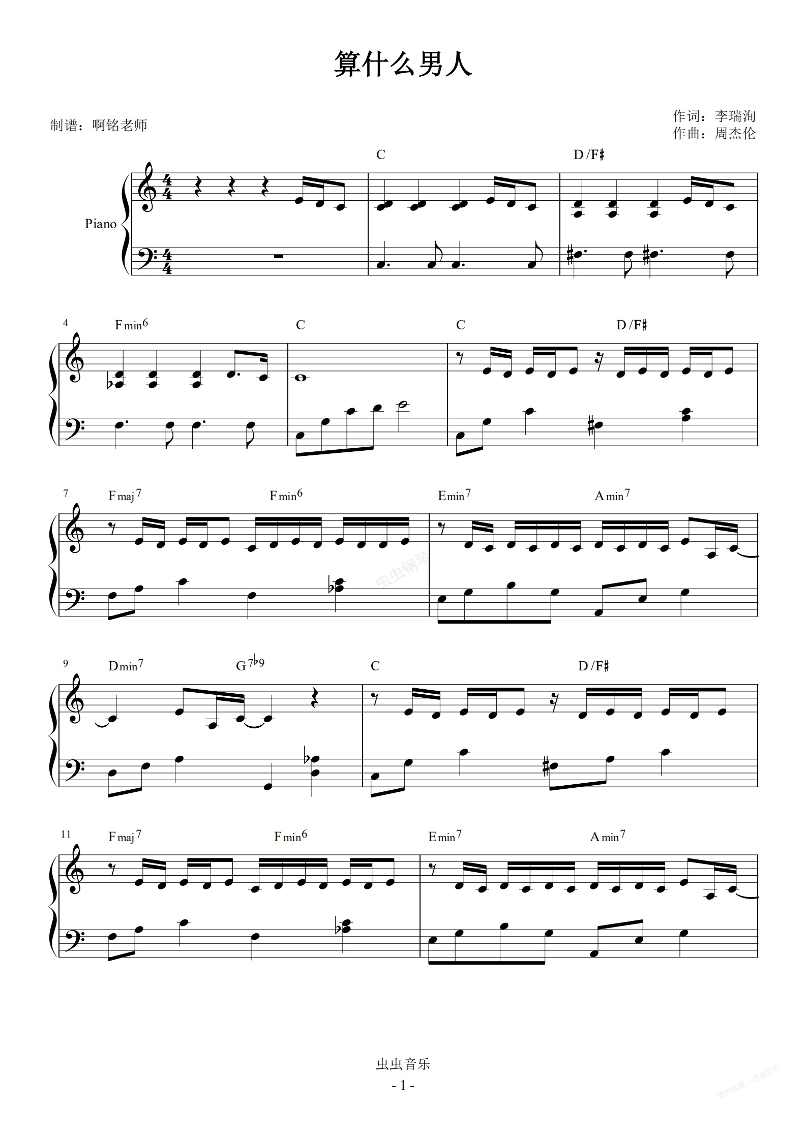 钢琴谱:算什么男人 C调简易 原曲和弦