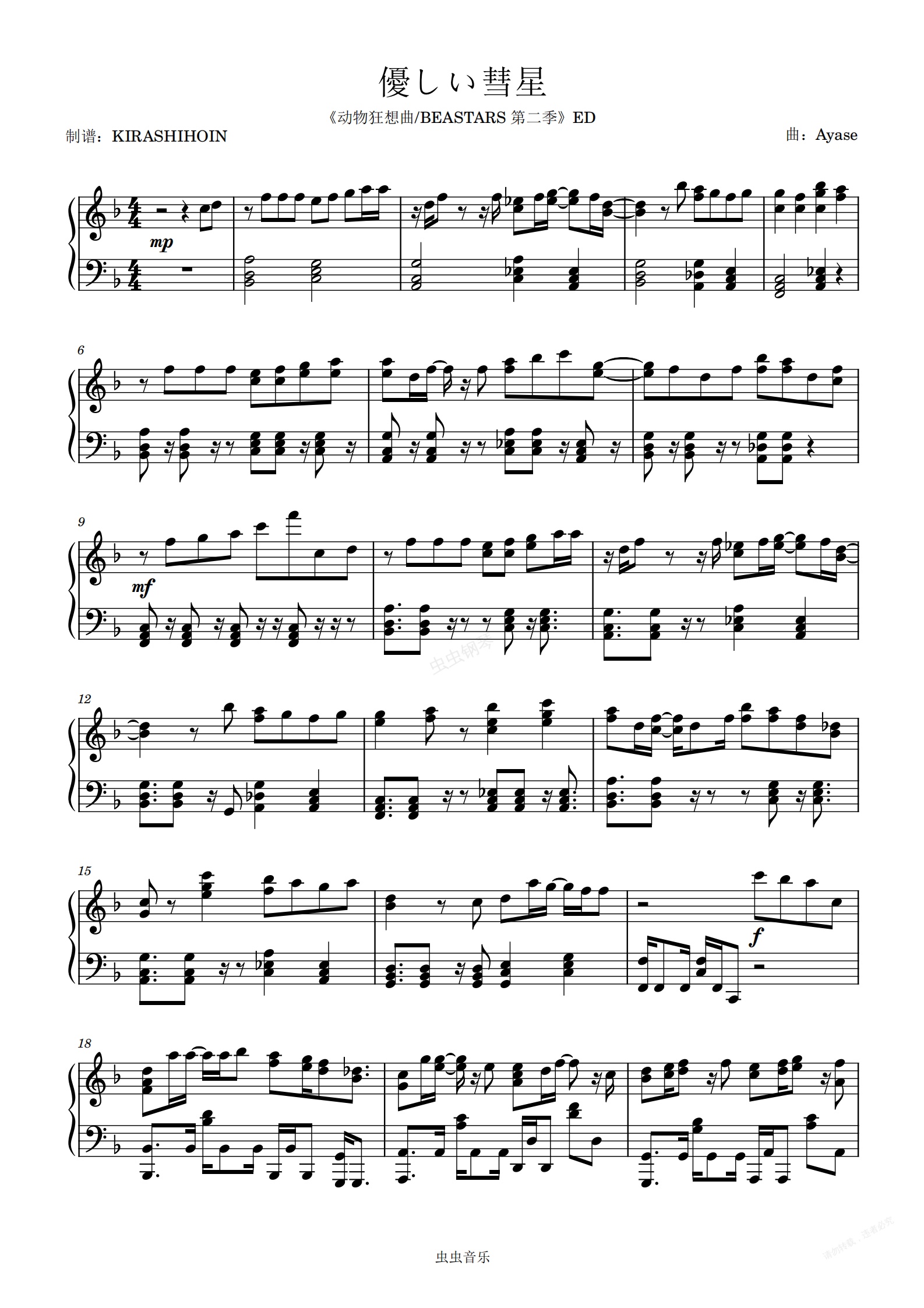 钢琴谱:優しい彗星(《动物狂想曲/BEASTARS 第二季》ED)