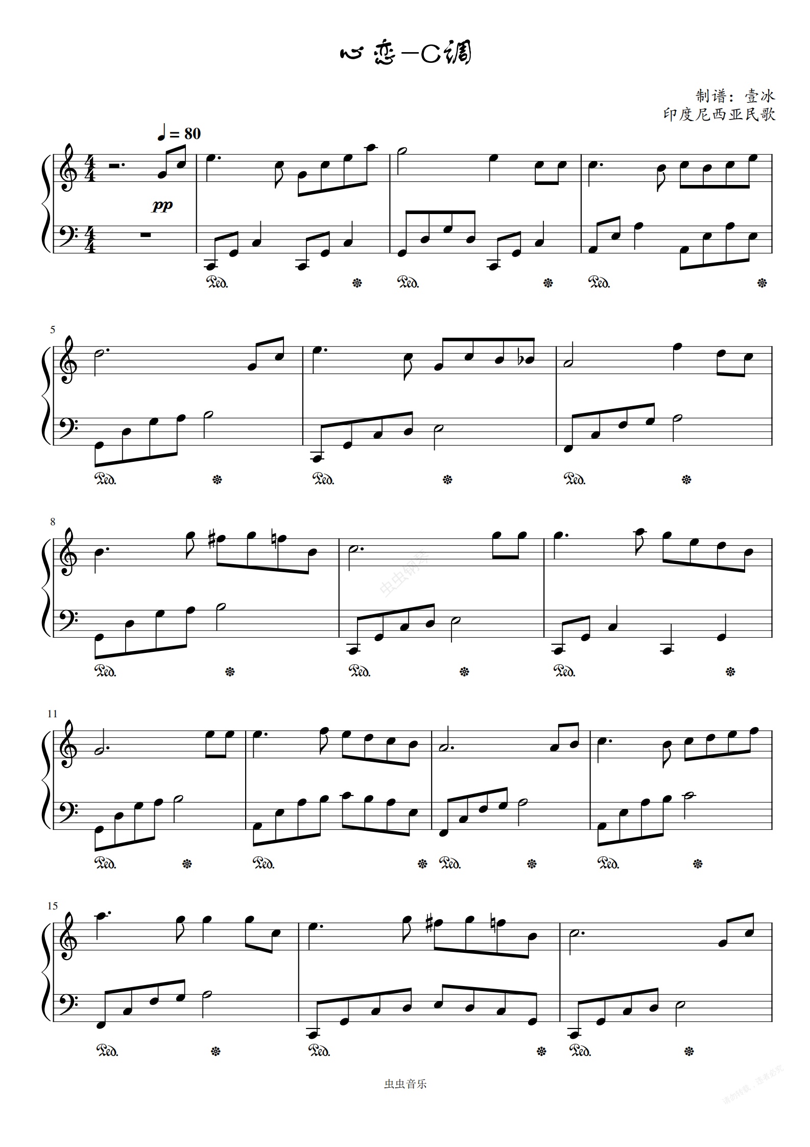 钢琴谱:心恋//印度尼西亚民歌-C调