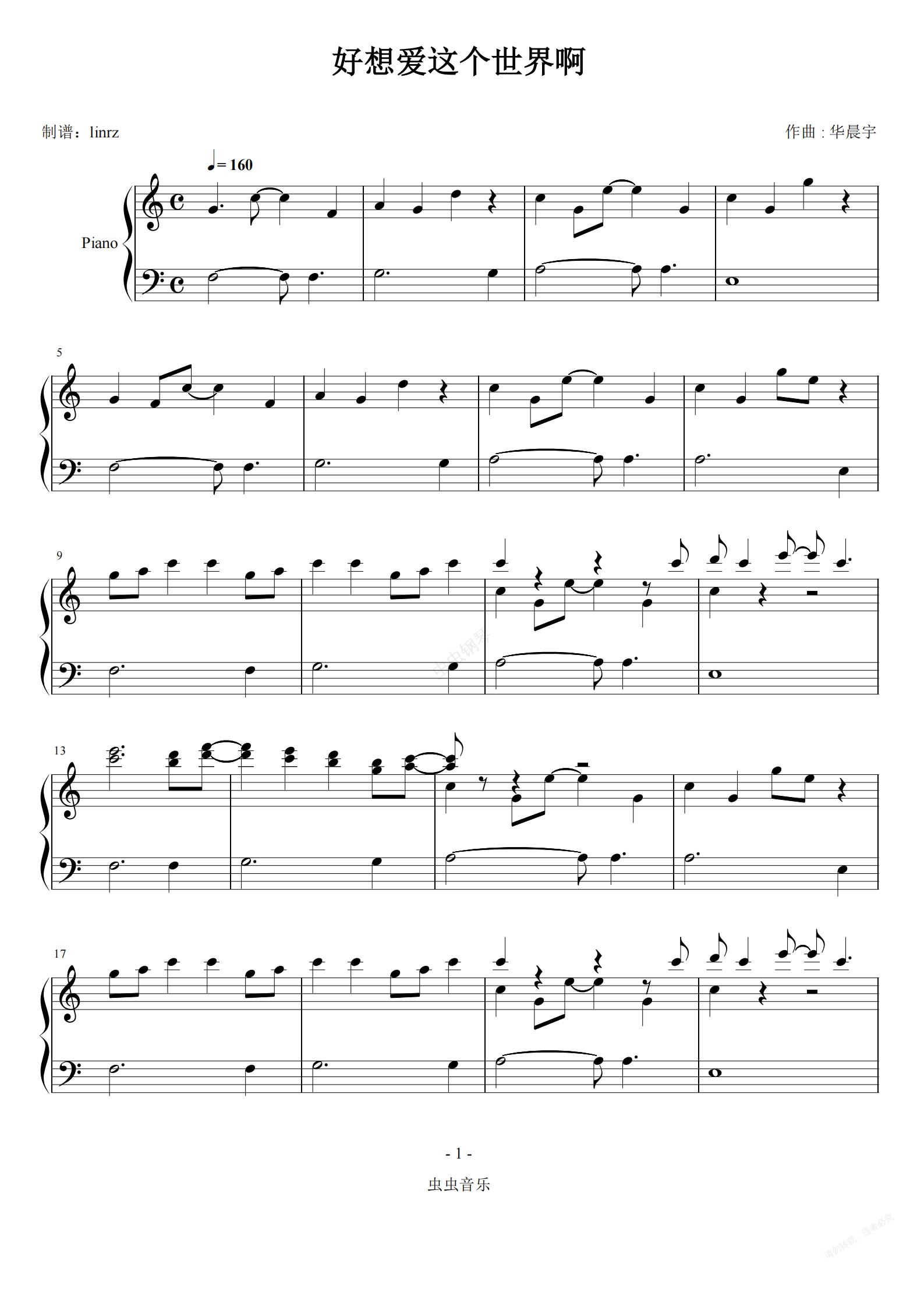 钢琴谱:华晨宇 - 好想爱这个世界啊