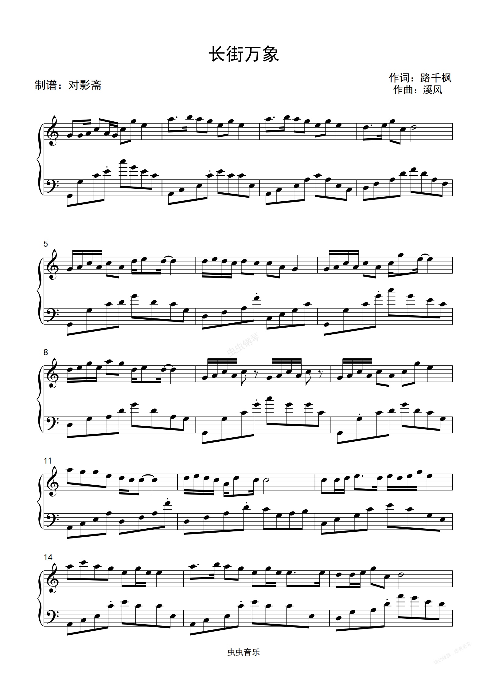 钢琴谱:长街万象(C调简单版)