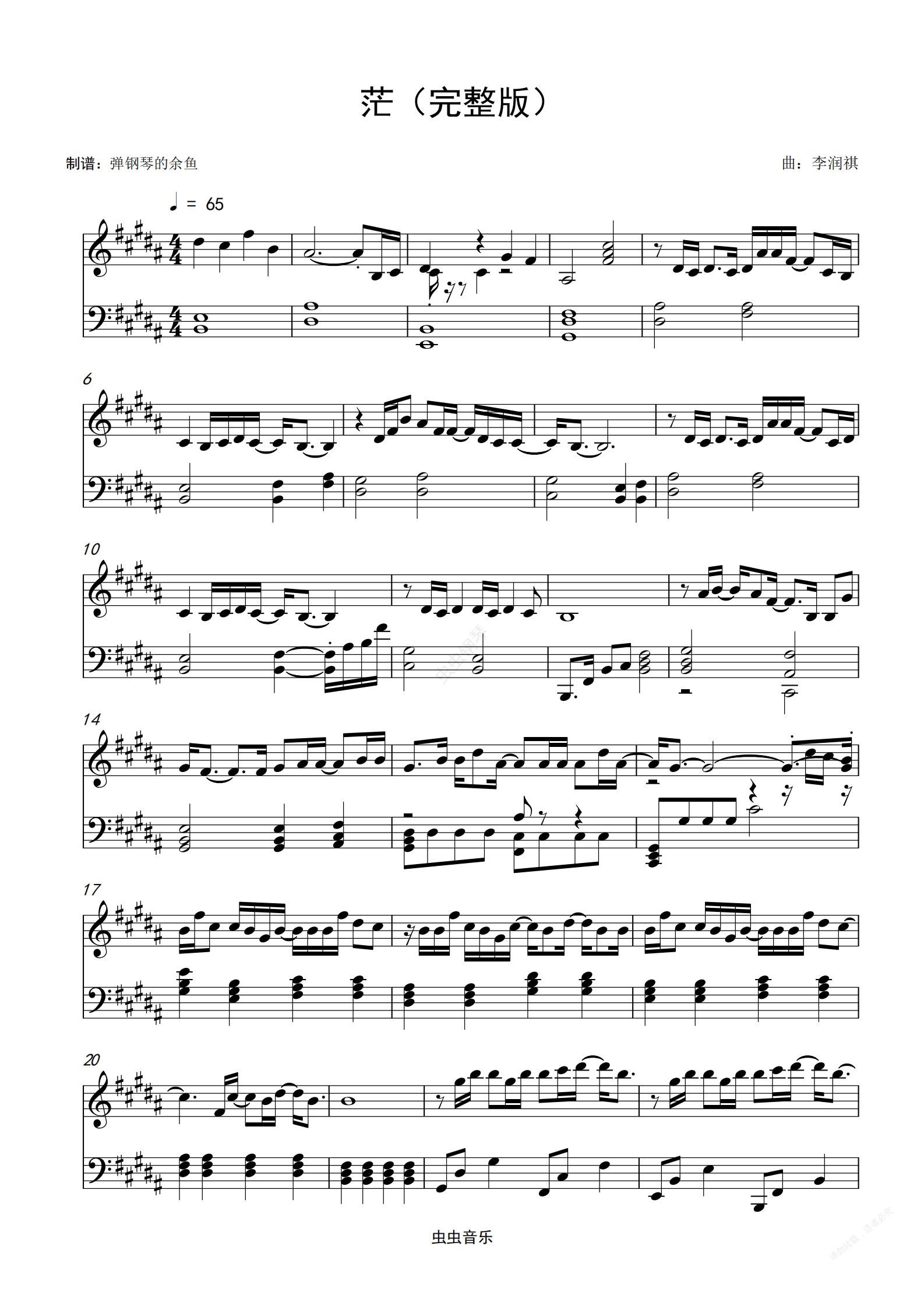 钢琴谱:茫-完整版-原调B调新手好听易学-弹钢琴的余鱼编配-网络热歌