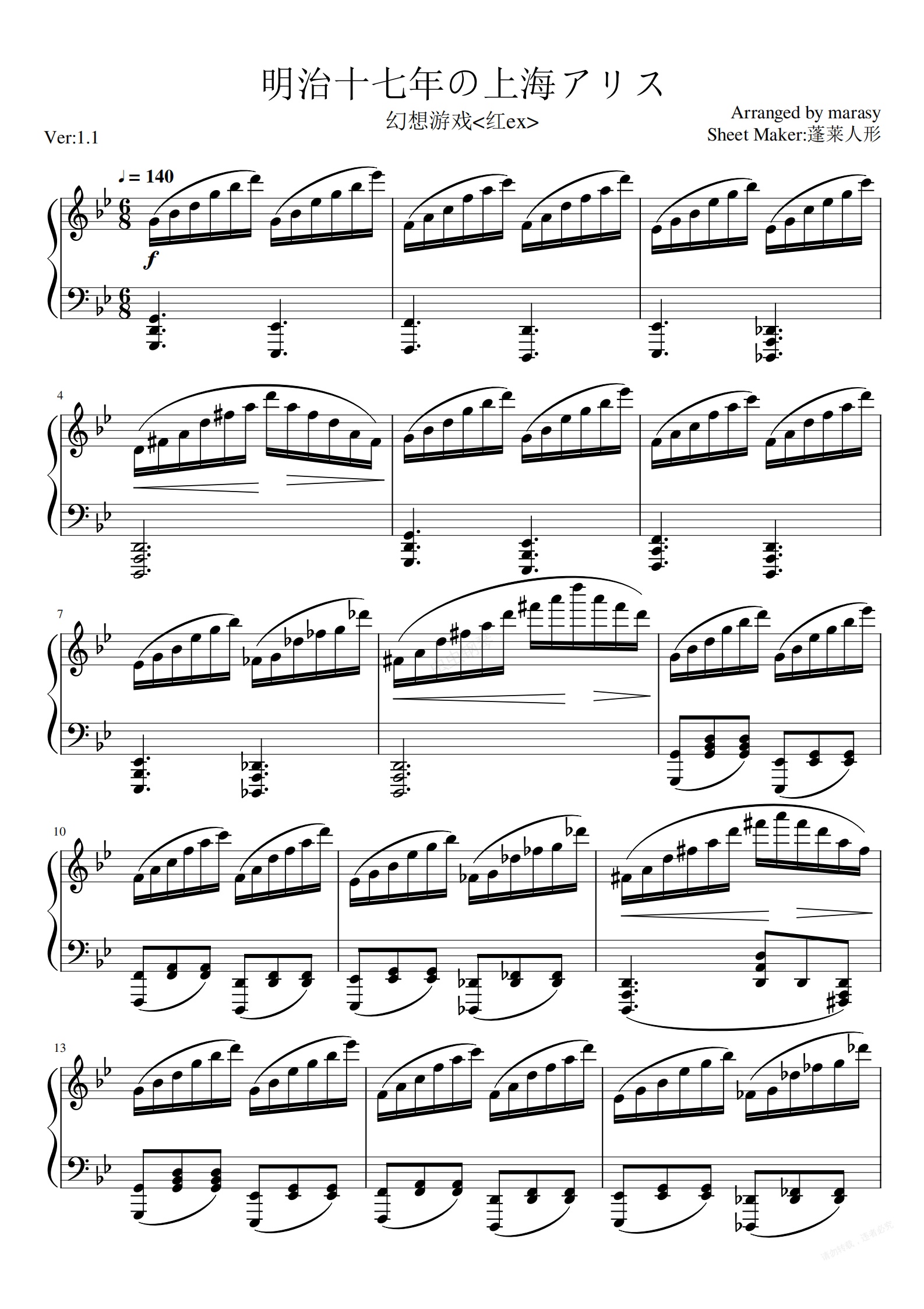 红魔乡最喜欢的曲子,扒到是红ex版本。中间有一部分左手实在太糊,自己发挥了一部分。