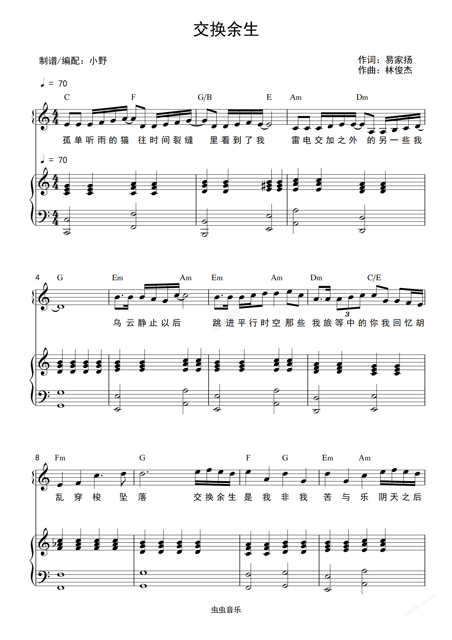 钢琴谱:交换余生(和弦弹唱版)