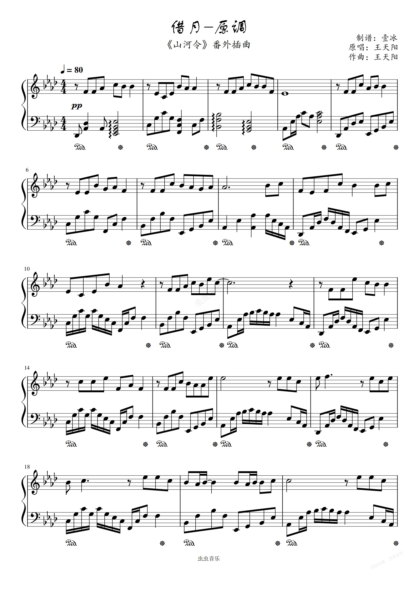 钢琴谱:借月//《山河令》番外插曲-原调版