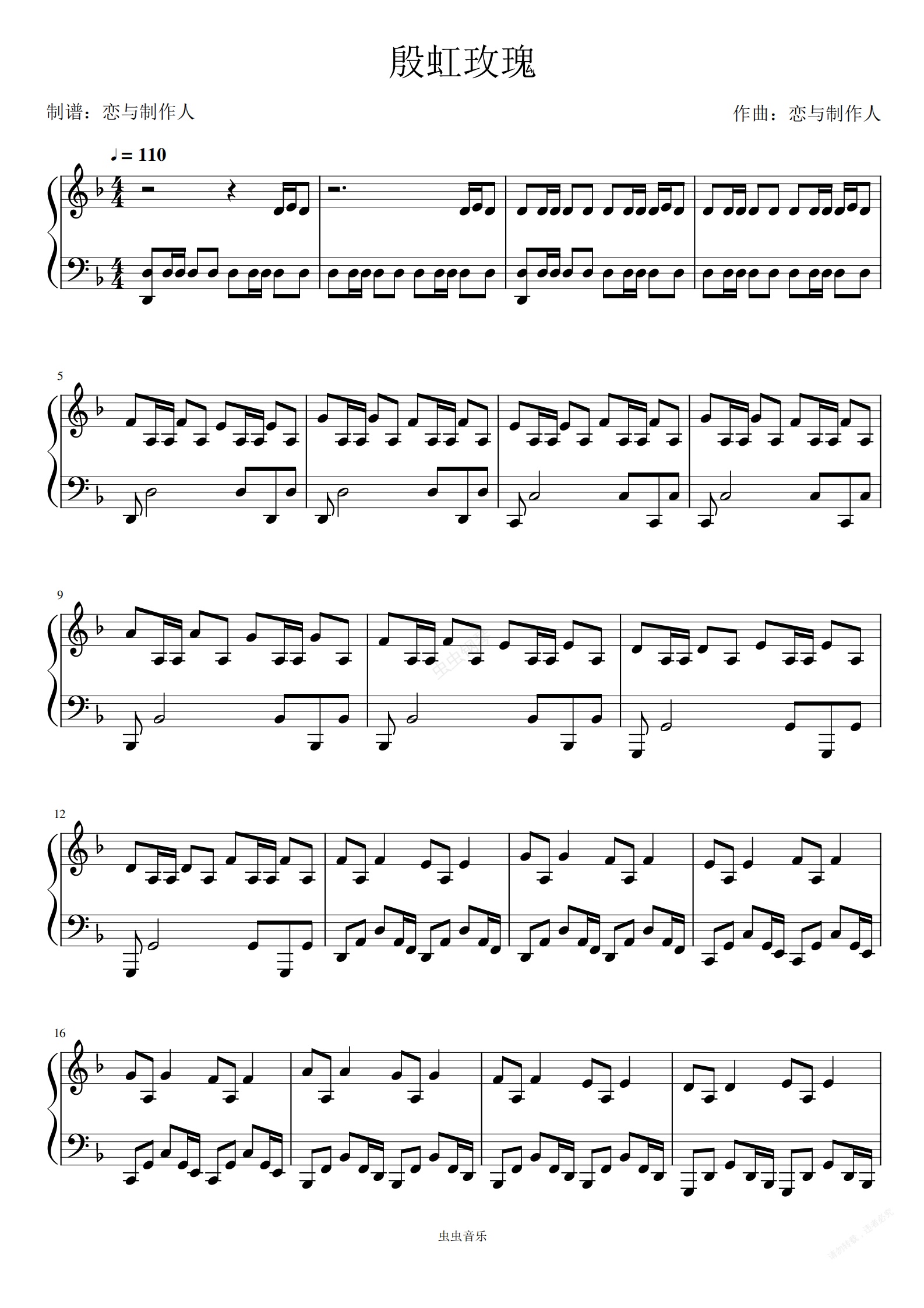 钢琴谱:恋与制作人:殷红玫瑰(HARD)