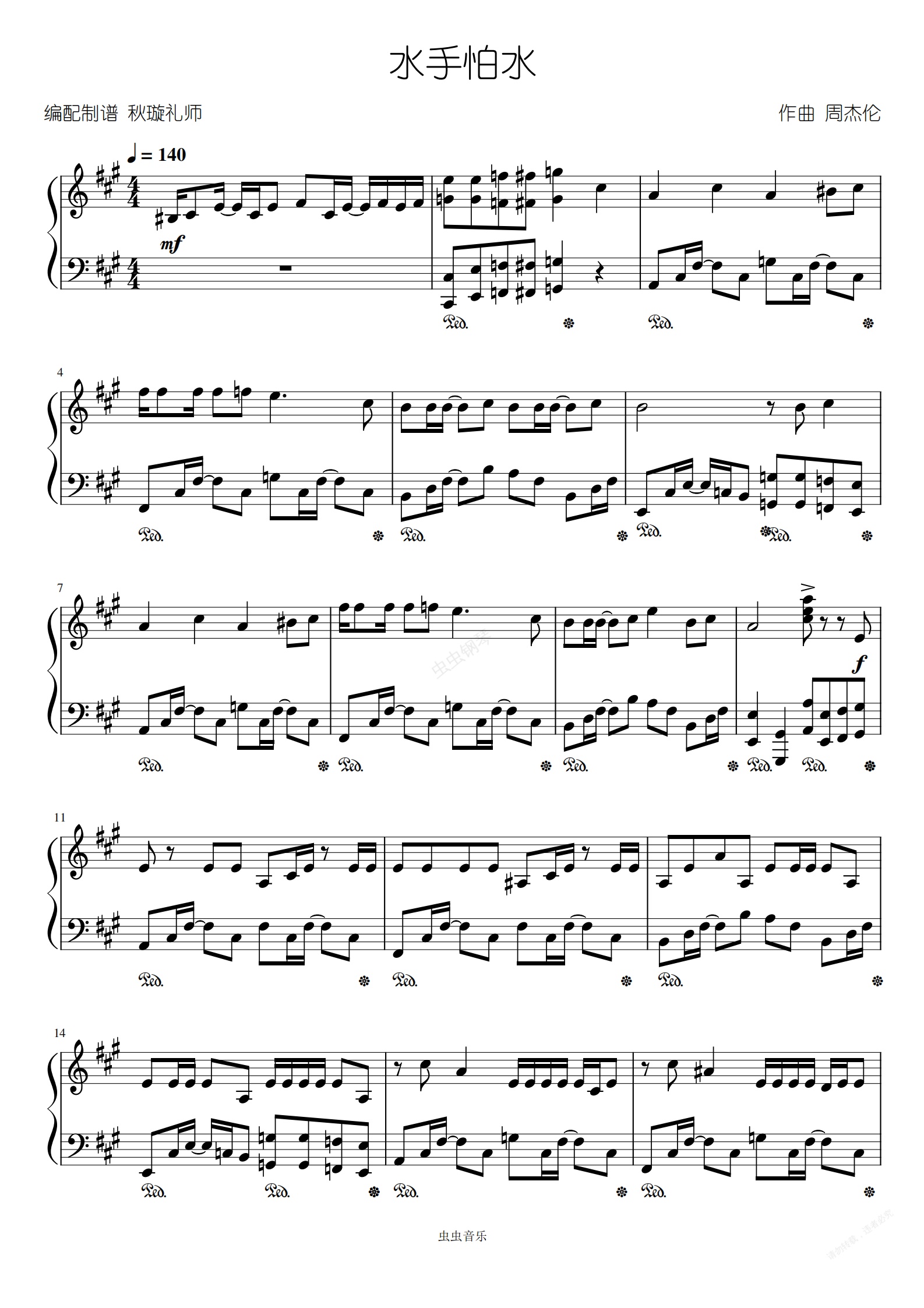 钢琴谱:水手怕水—周杰伦 [杰迷演奏版]
