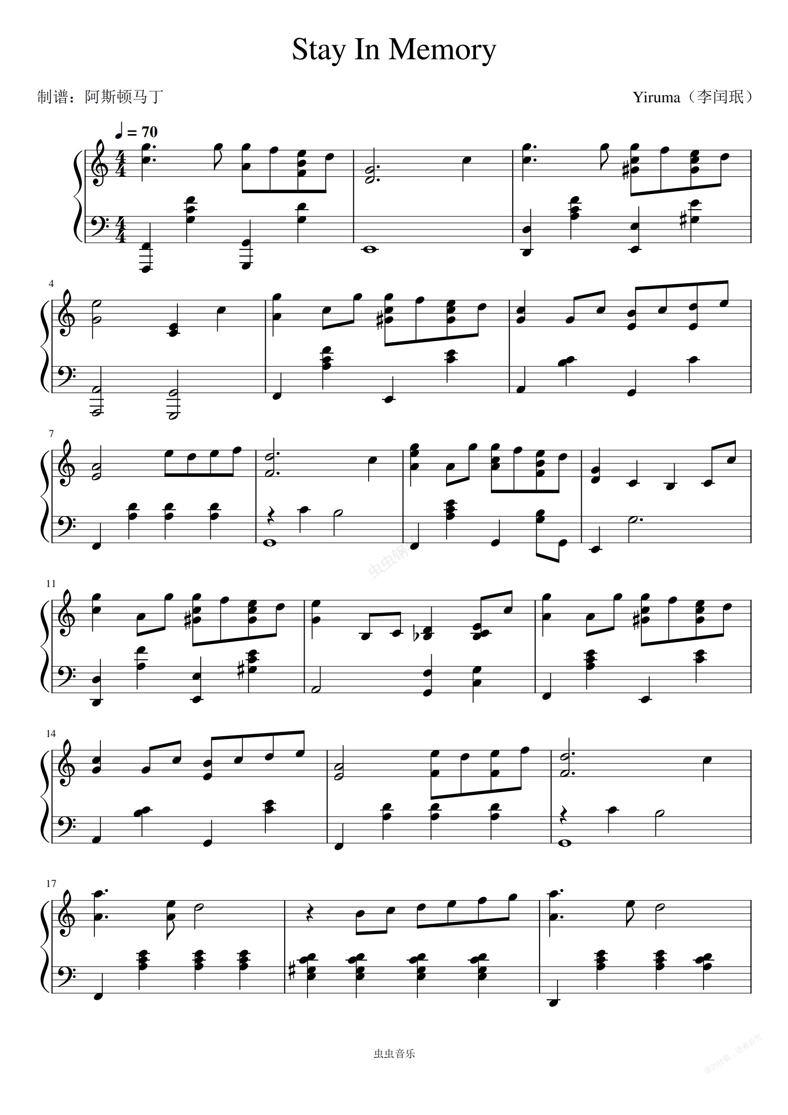钢琴谱:李闰珉-《Stay In Memory》