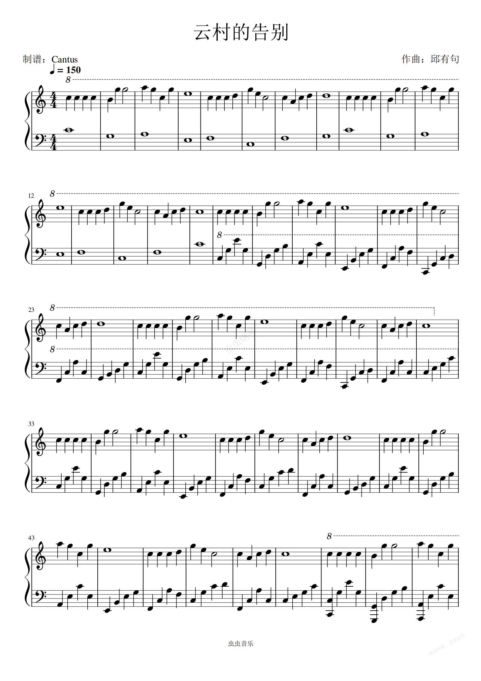 钢琴谱:云村的告别-邱有句