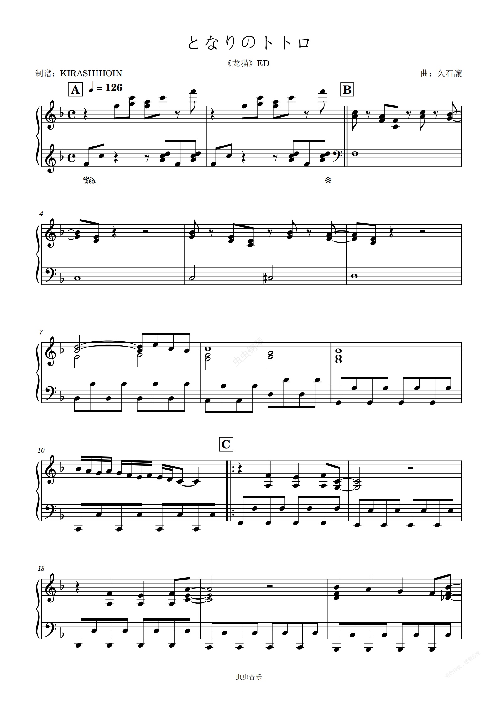 钢琴谱:となりのトトロ(《龙猫》ED)