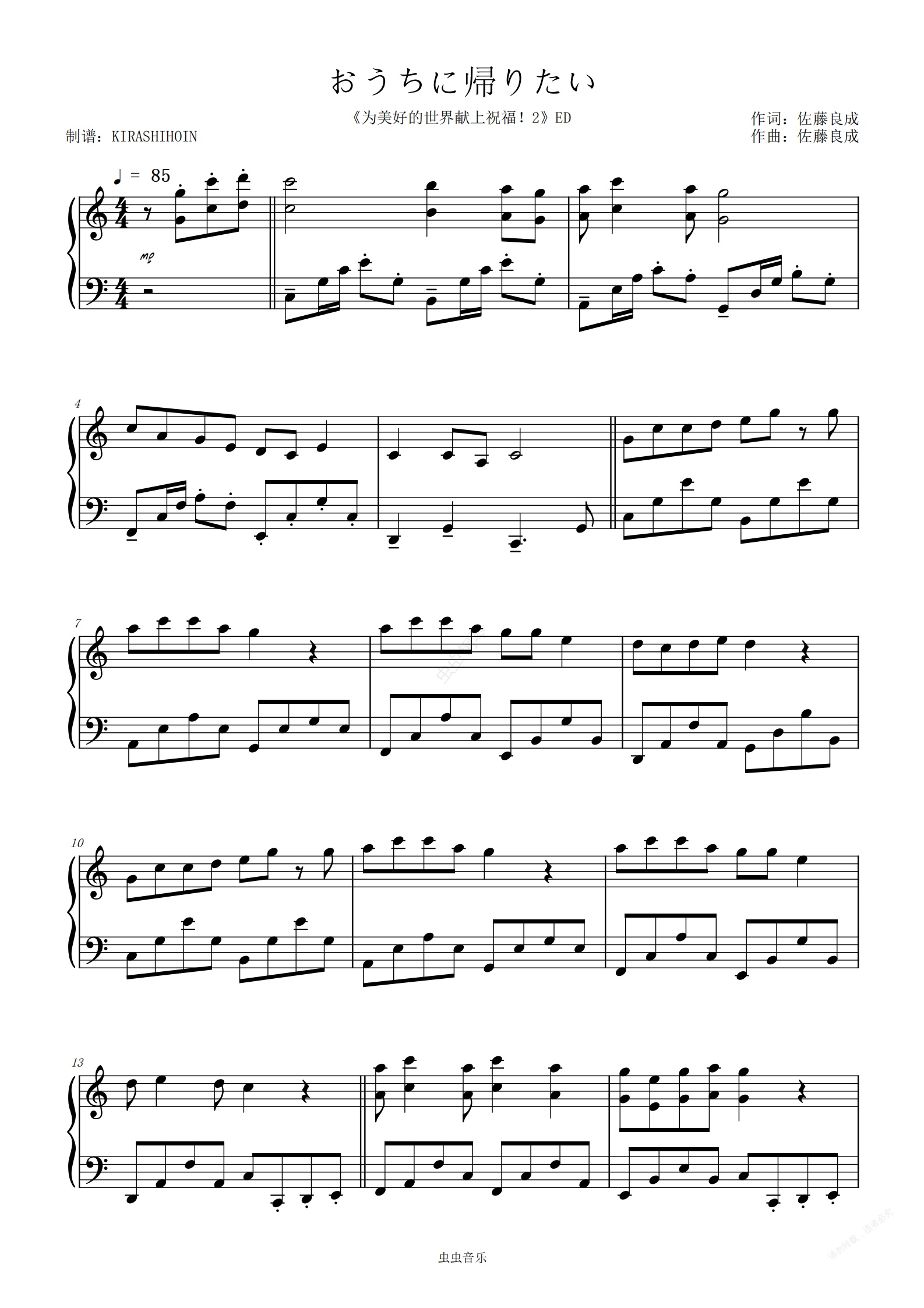 钢琴谱:おうちに帰りたい(《为美好的世界献上祝福!2》ED)