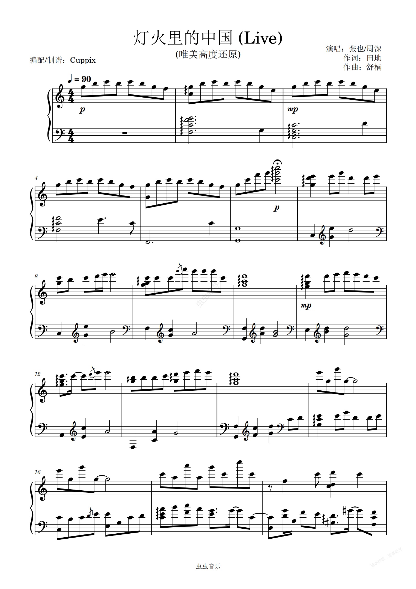 钢琴谱:《灯火里的中国》Cuppix改编-唯美高度还原(张也、周深)