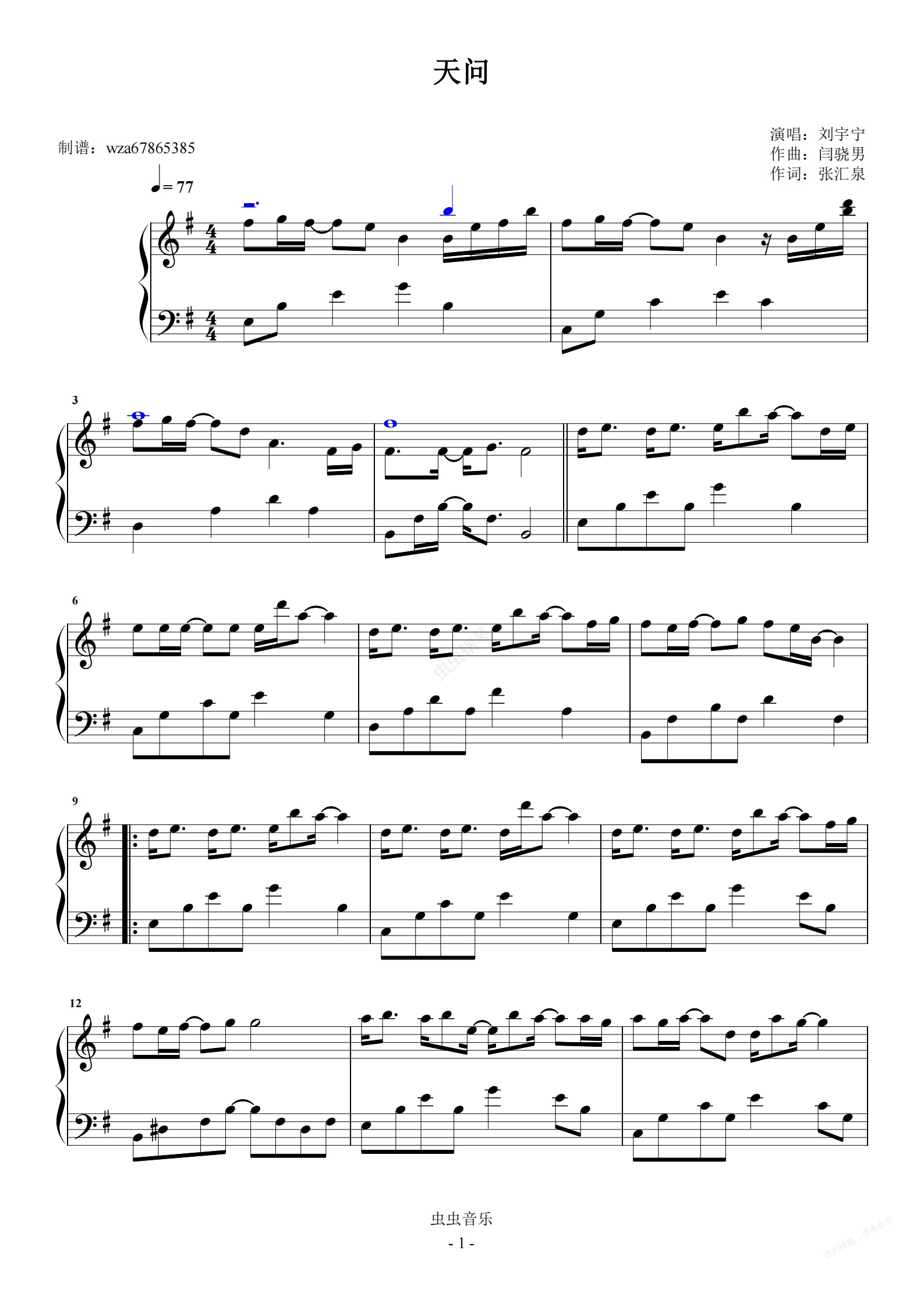 钢琴谱:天问