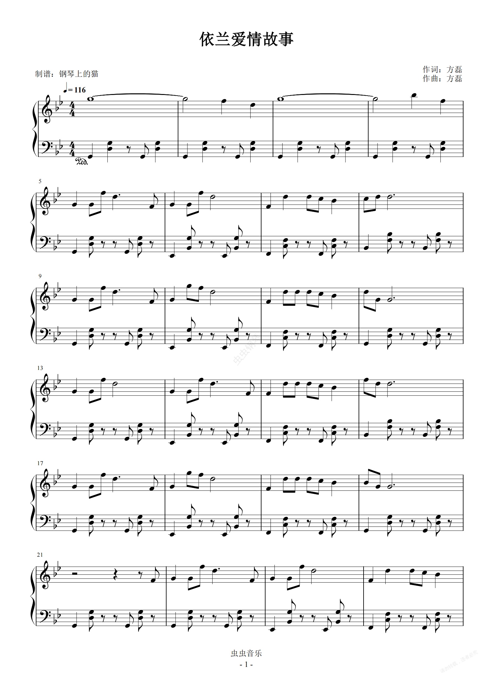钢琴谱:依兰爱情故事 经典版 《你好,李焕英》插曲