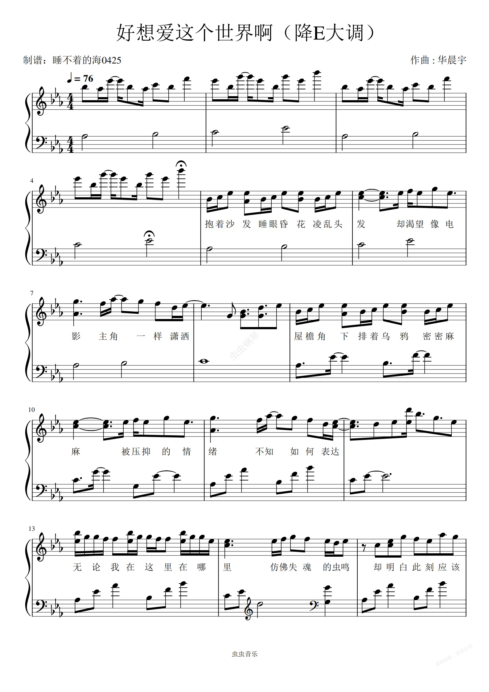 钢琴谱:好想爱这个世界呀