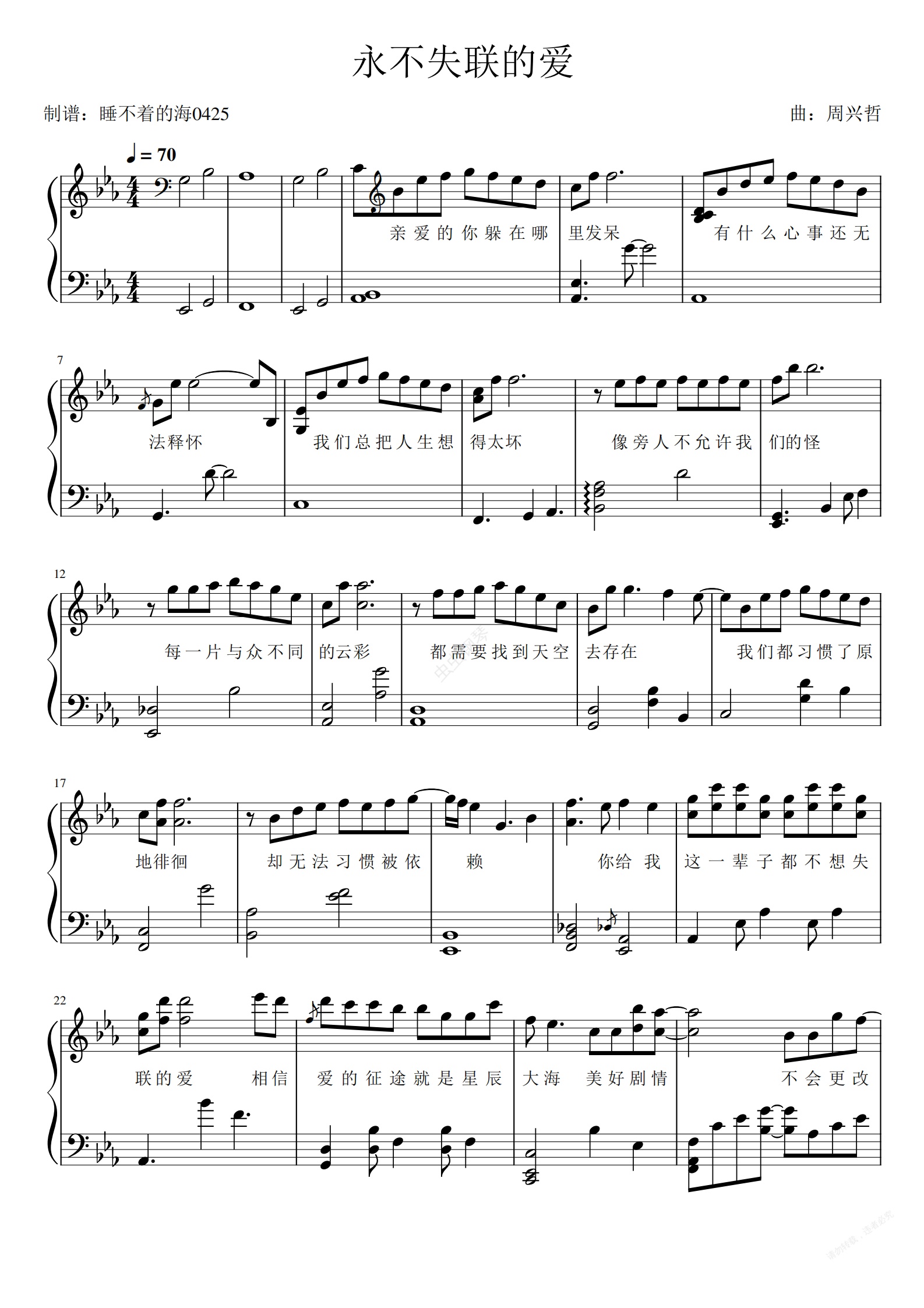 钢琴谱:永不失联的爱