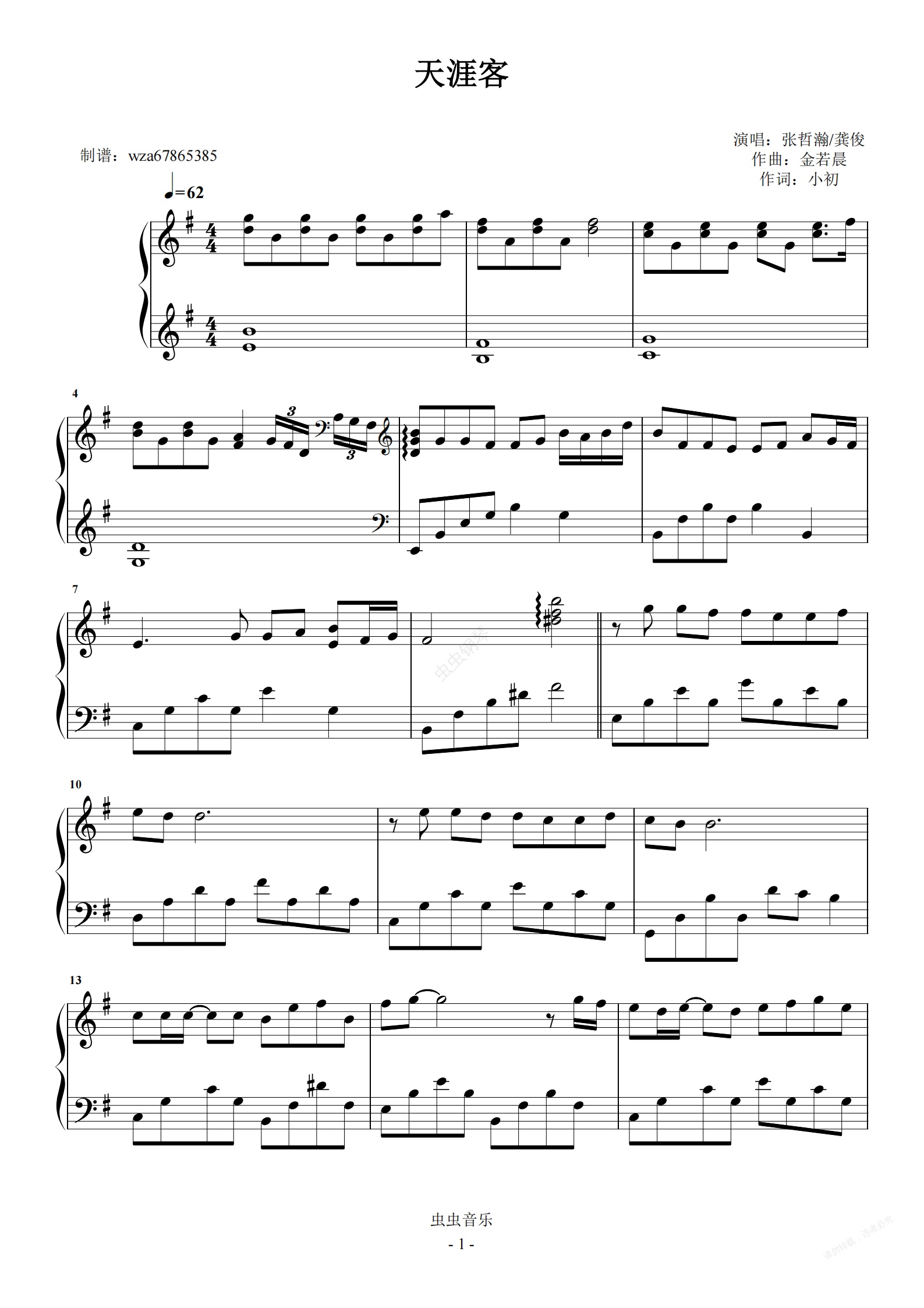 钢琴谱:天涯客