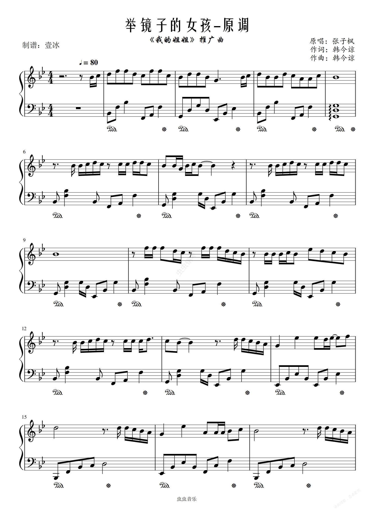 钢琴谱:举镜子的女孩//《我的姐姐》推广曲-原调版