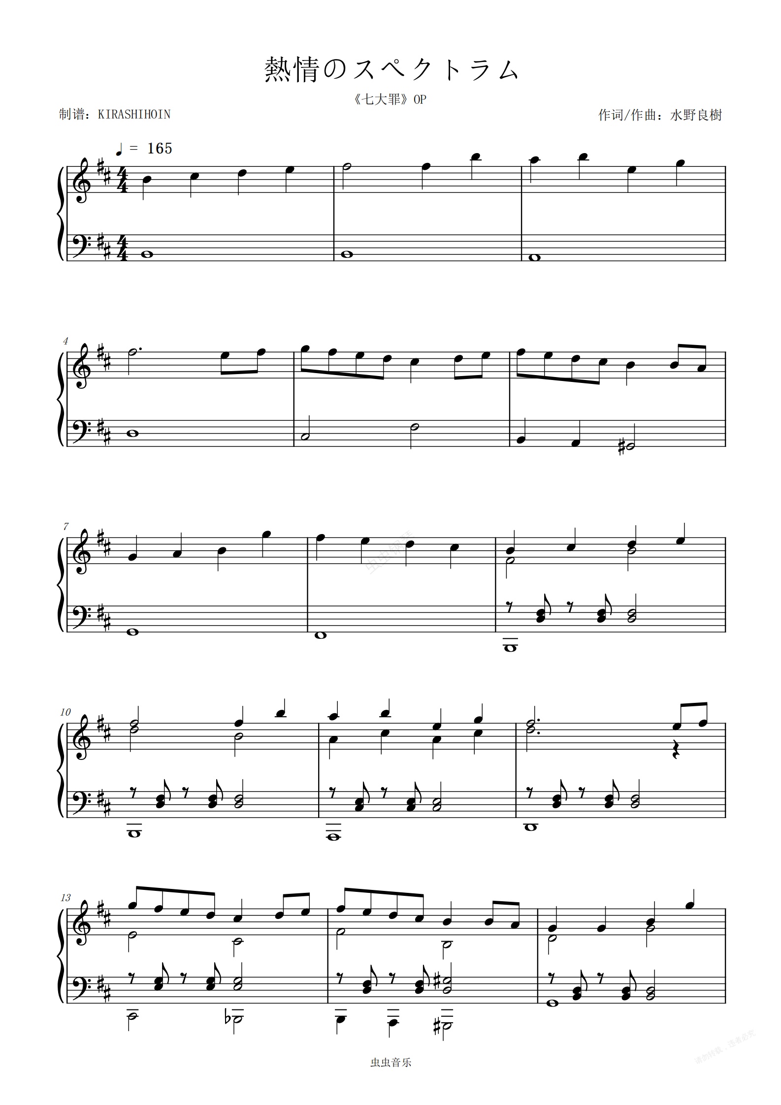 钢琴谱:熱情のスペクトラム/热情光谱(《七大罪》OP)