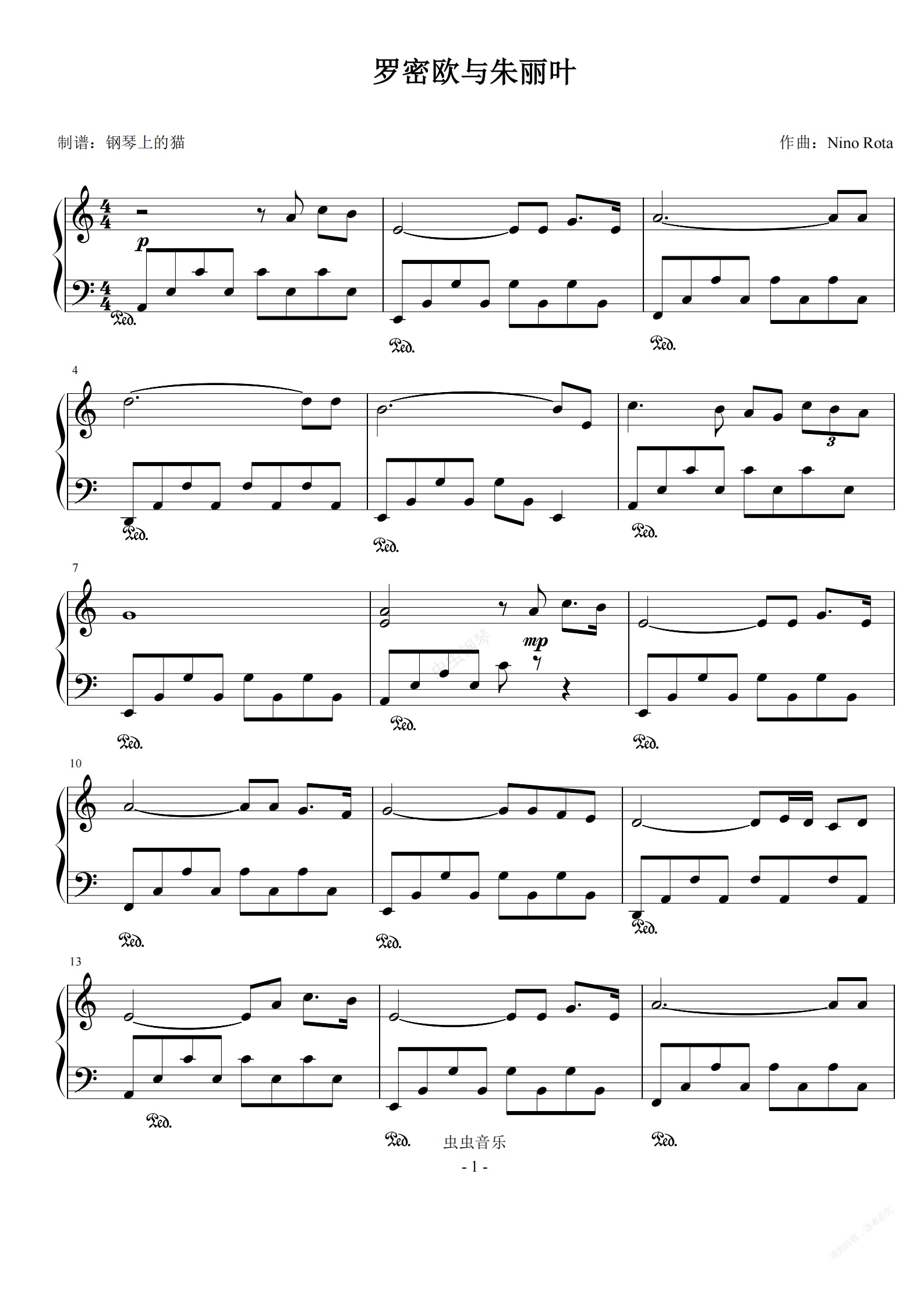 钢琴谱:罗密欧与朱丽叶 C调简易版