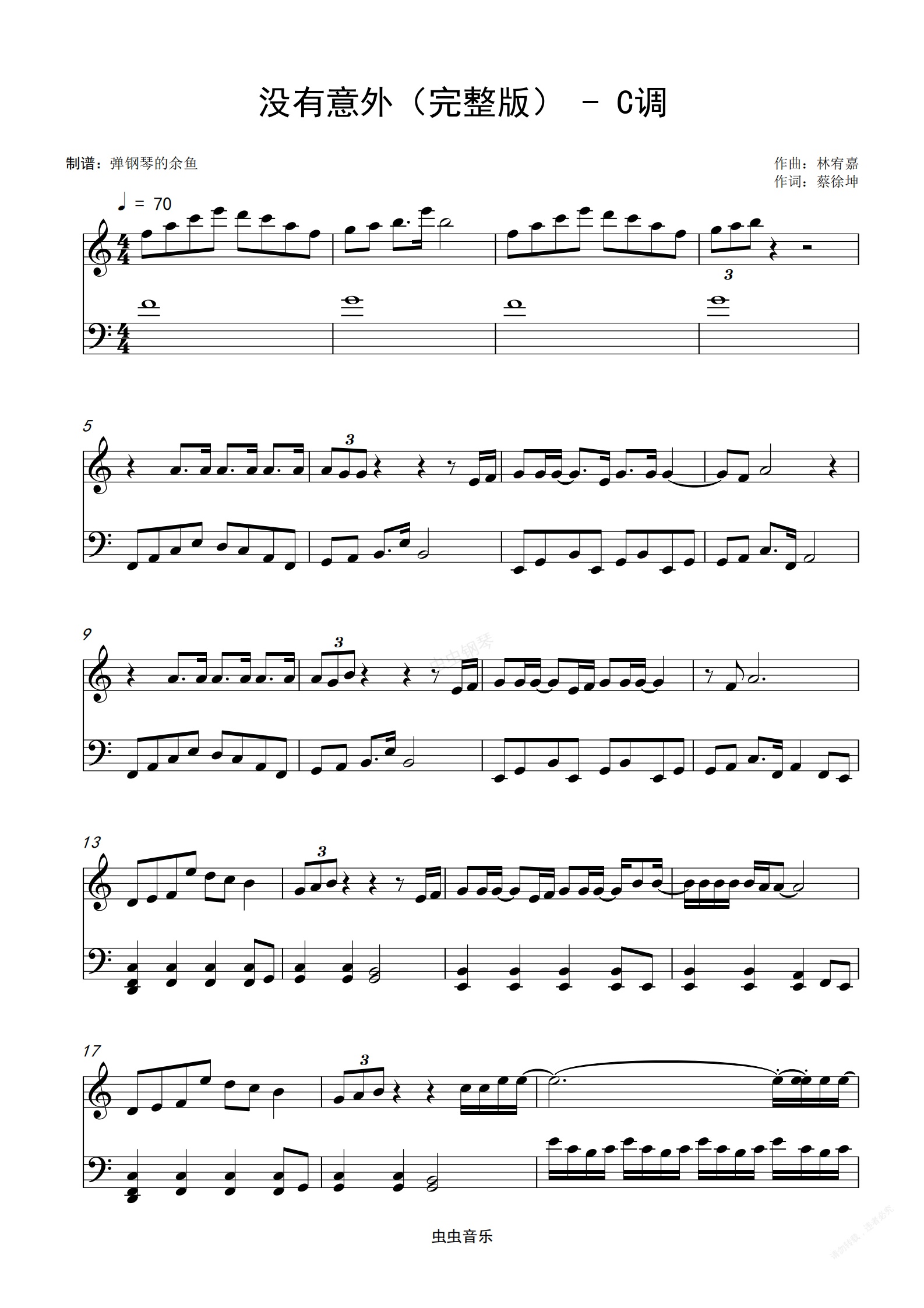 钢琴谱:没有意外-蔡徐坤-C调新手好听易学-弹钢琴的余鱼编配