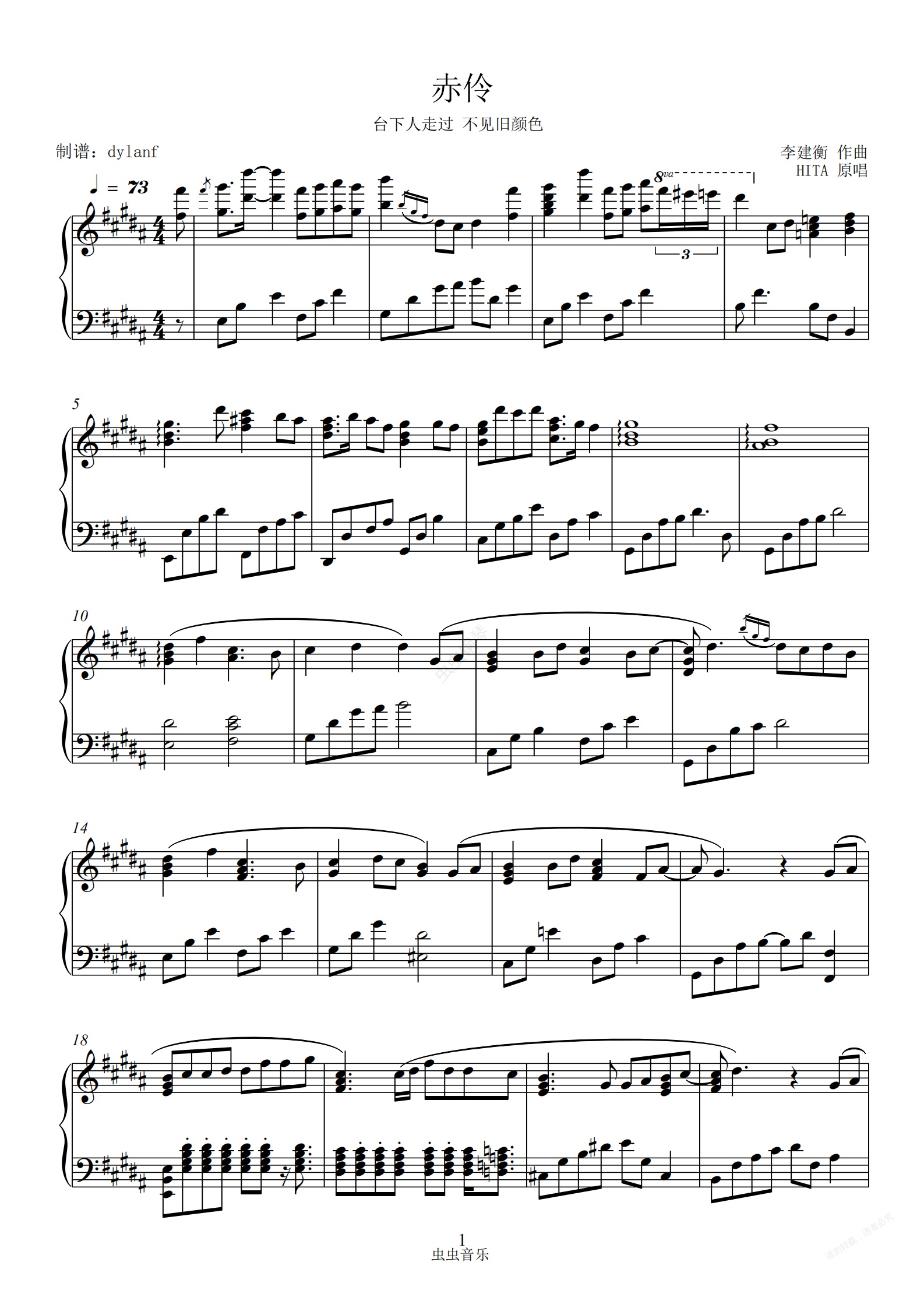钢琴谱:赤伶(唯美版)高度还原 HITA 李玉刚 等什么君
