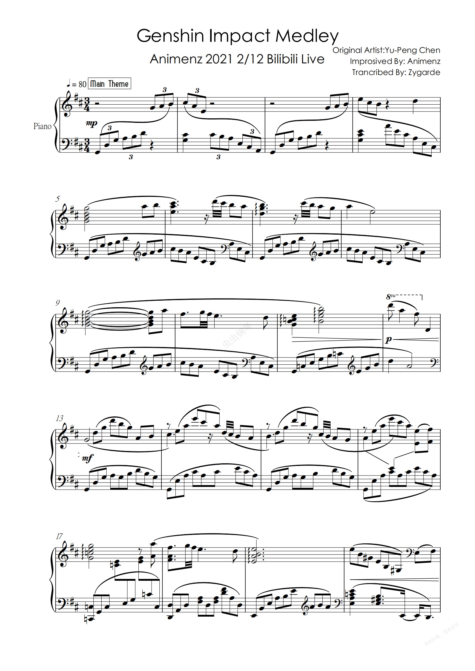 樂譜+MIDI: 有粉丝勋章的请在下面留言(怎么有粉丝勋章呢?很简单投我任何一个影片总和20个硬币就可以了),之后私信找我要QQ号