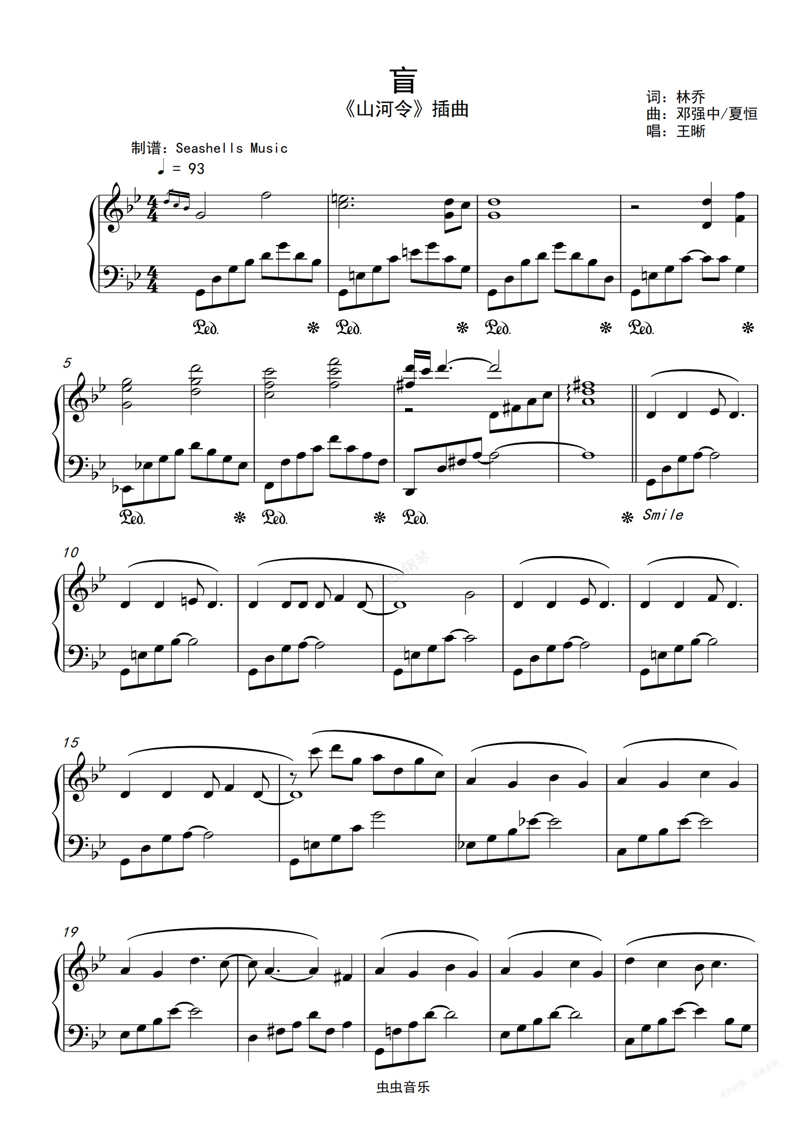 钢琴谱:王晰-《盲》山河令插曲 精编钢琴独奏