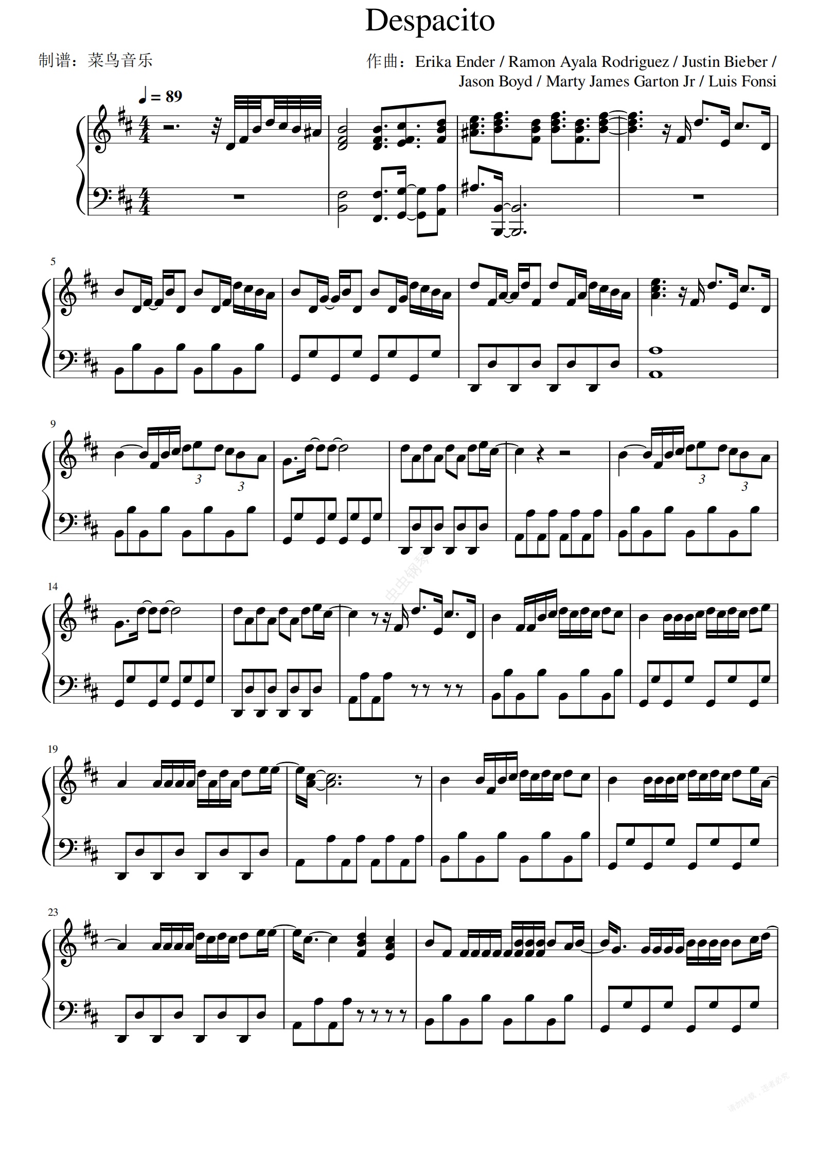 钢琴谱:Despacito-Luis Fonsi ft. Daddy Yankee