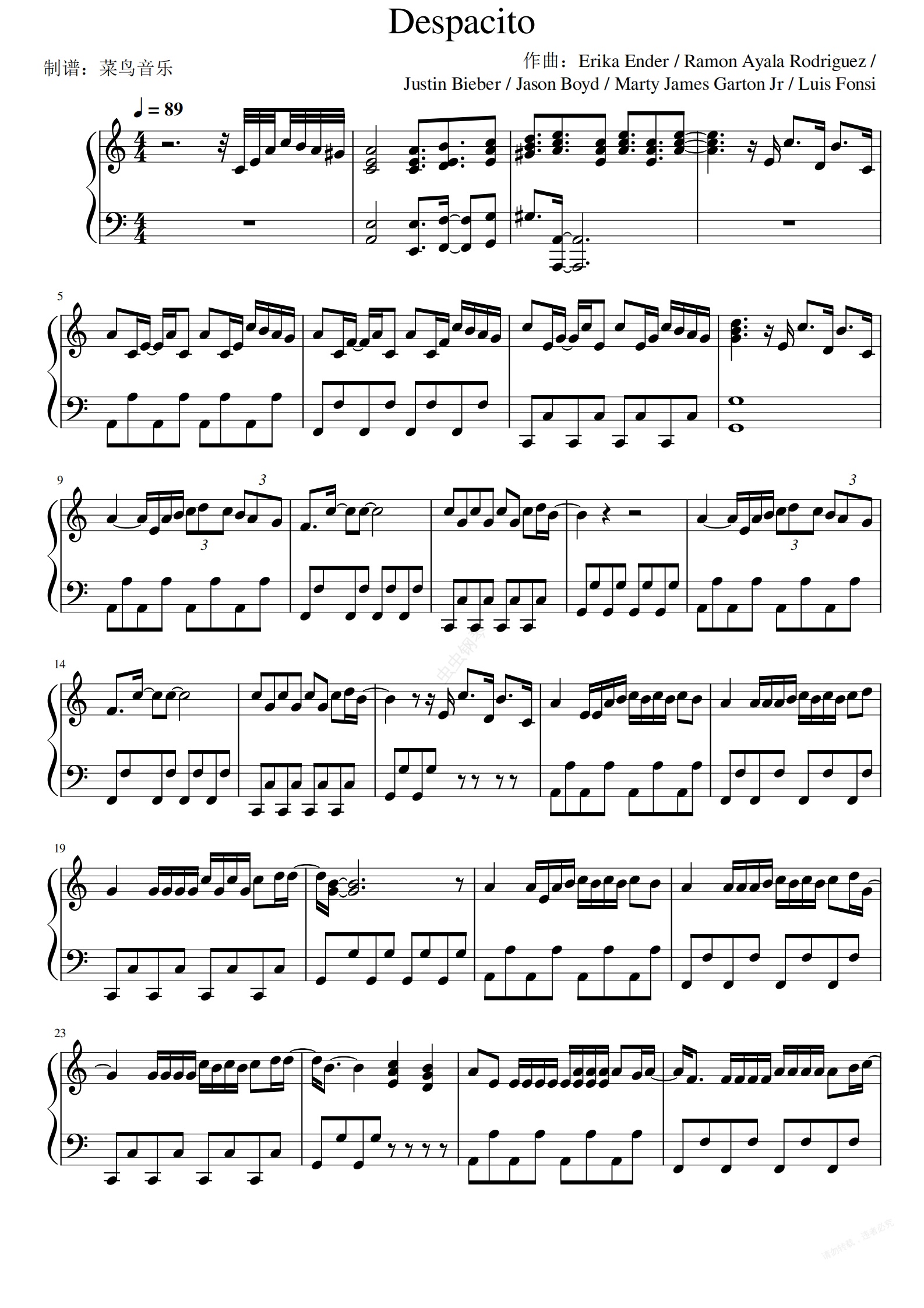 钢琴谱:Despacito-Luis Fonsi ft. Daddy Yankee