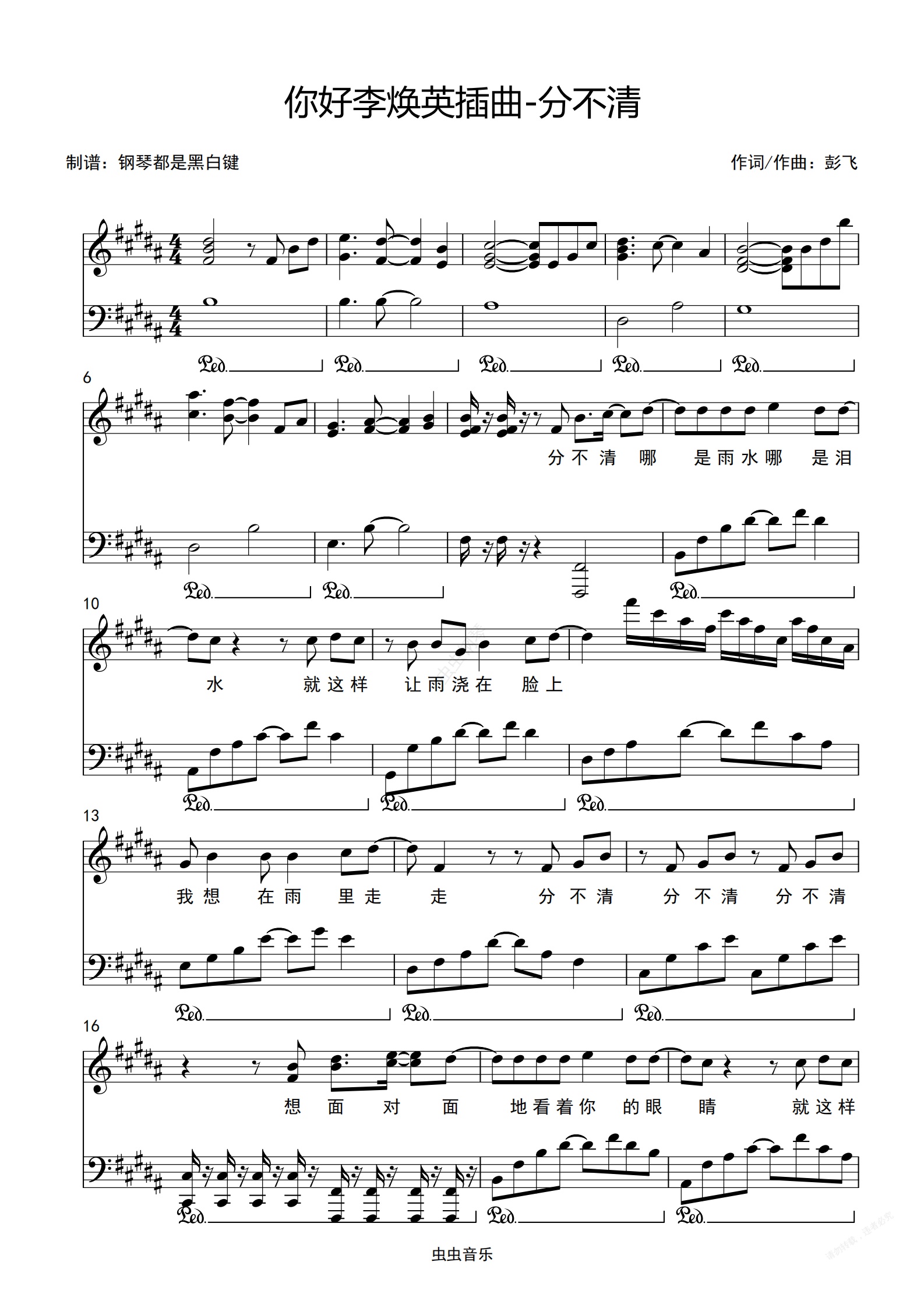 钢琴谱:《你好,李焕英》插曲 分不清 原调 附歌词